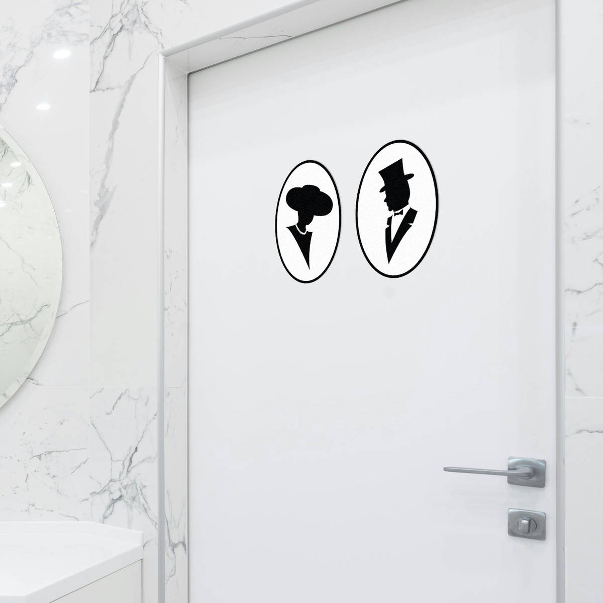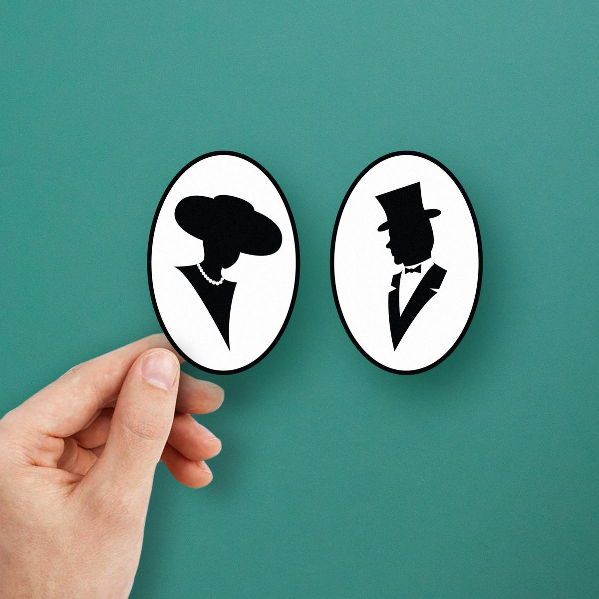 Bring a touch of vintage elegance to your belongings with this classic silhouette sticker set featuring a gentleman in a top hat and a lady in pearls. Crafted from durable, waterproof vinyl, these elegant decals are perfect for cars, laptops, or walls, adding a timeless and sophisticated aesthetic to any surface. Designed to resist fading and wear, these stickers are suitable for both indoor and outdoor use. Easy to apply and remove without leaving residue, they offer flexibility for various decorative needs. Available in multiple sizes, these decals are ideal for fans of vintage fashion and classic design.