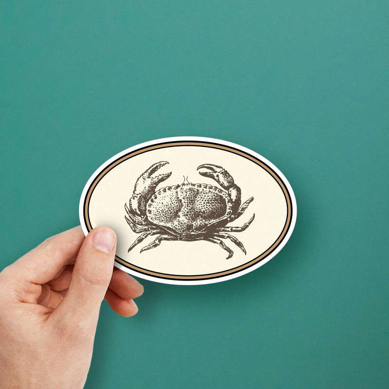 Bring coastal elegance to your decor with the Vintage Crab Oval Sticker, a beautiful decal featuring a classic crab illustration in beige and brown tones. The timeless oval design makes it perfect for beach lovers and marine life enthusiasts who want to add a touch of nautical charm to their car, laptop, or walls. Crafted from durable vinyl, this sticker is weatherproof and fade-resistant, ensuring long-lasting beauty indoors and outdoors. Available in multiple size options, it combines style and functionality with an easy-to-apply, residue-free peel-and-stick design.