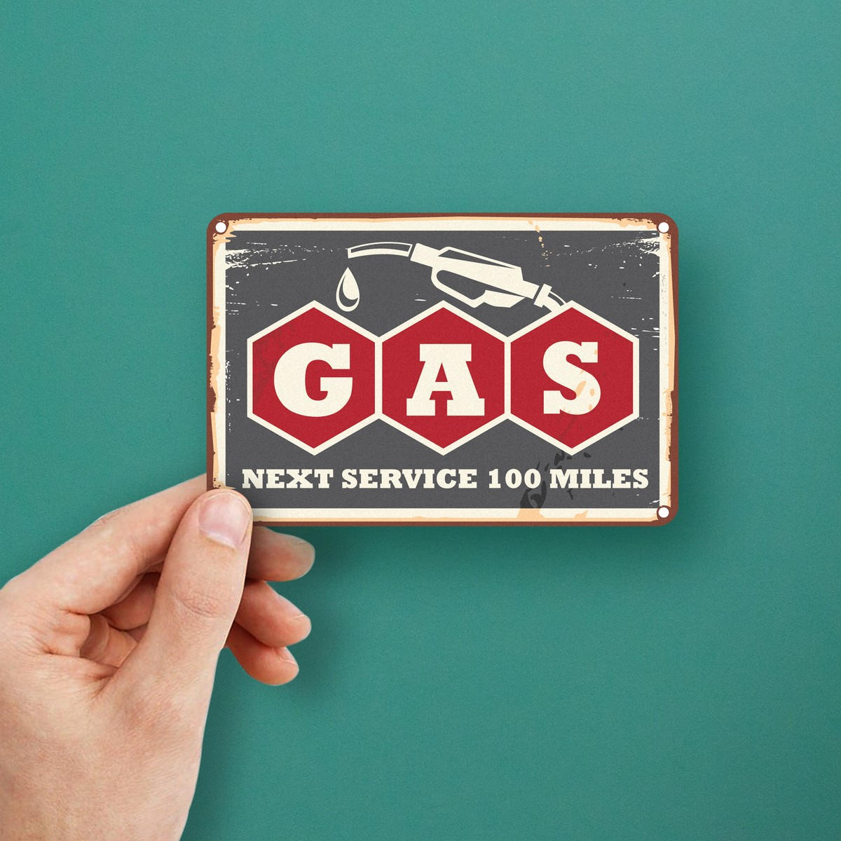 Bring a touch of vintage Americana to your space with this “Gas Next Service 100 Miles” sign sticker. Perfect for garages, man caves, or rustic decor setups, this retro-inspired decal captures the essence of classic gas stations. Made from durable, high-quality vinyl, this sticker is suitable for both indoor and outdoor use. The self-adhesive backing makes it easy to apply to any smooth surface, and it’s available in multiple sizes to suit your decorative needs. Whether you’re a fan of road trips or retro decor, this sign adds a nostalgic charm to any setting.