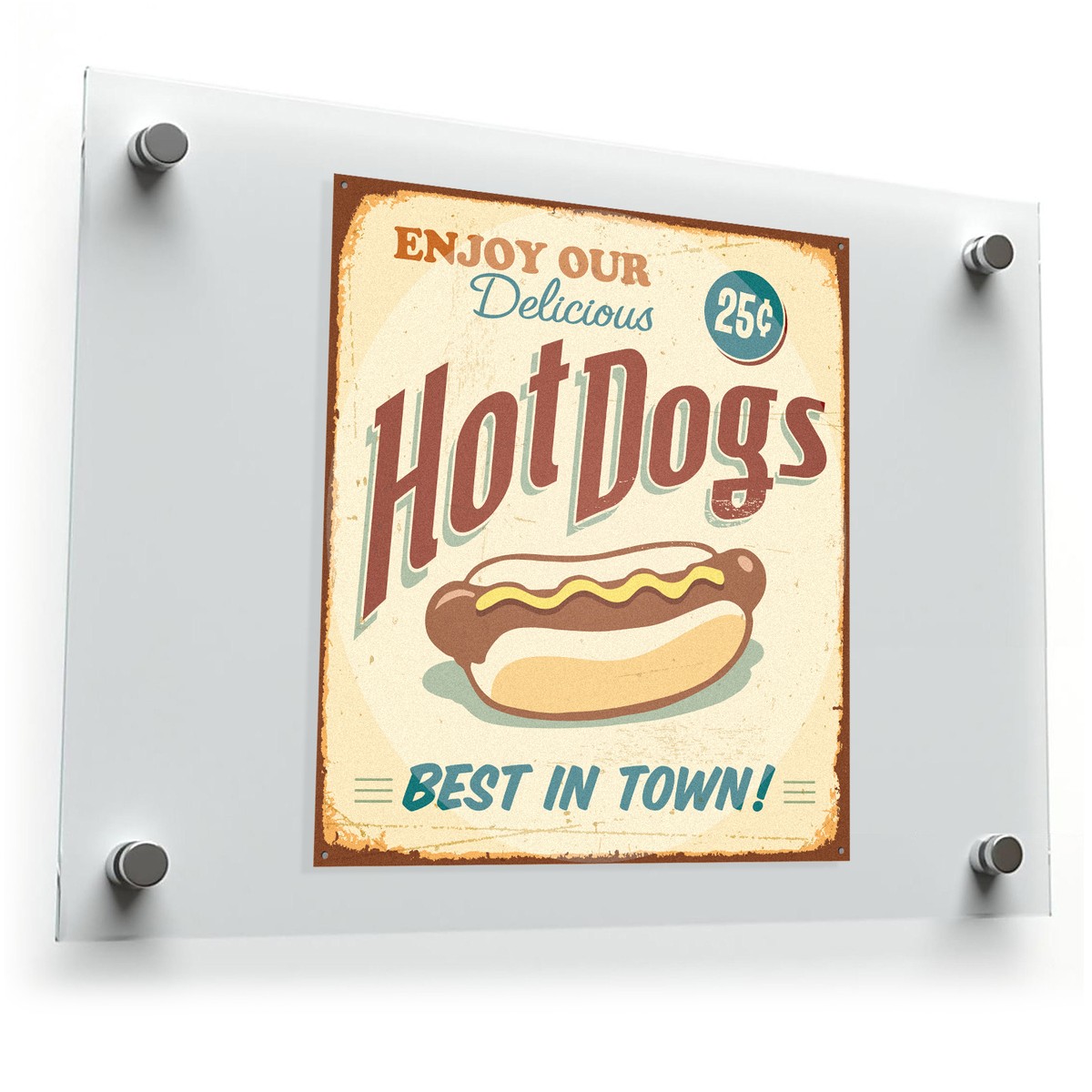 Add a nostalgic touch to your decor with this vintage-style hot dog poster sticker, perfect for fans of retro diner designs. Featuring a classic “Hot Dogs – Best in Town” advertisement, this sticker is ideal for use in cafes, kitchens, or food trucks. Made from durable vinyl, it’s designed to last, whether used indoors or outdoors, and is easy to apply with its peel-and-stick design. Bring the charm of old-school diners into your space with this fun and inviting sticker, available in multiple sizes to suit your needs.