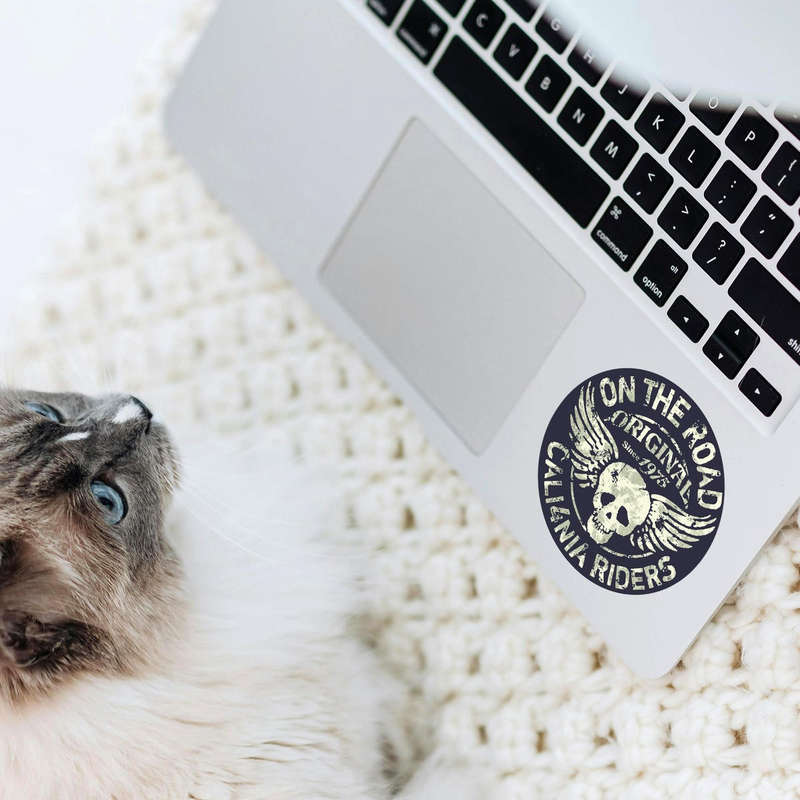 Rev up your style with this vintage “On the Road” California Riders sticker, designed with a bold skull and wings motif. Crafted from durable, waterproof vinyl, this decal is perfect for adding a rebellious edge to your motorcycle, helmet, or gear. Its retro-inspired design is sure to resonate with lovers of classic biker culture, and the high-quality material ensures it stands up to the elements without fading or peeling. Easy to apply and remove, this sticker is the perfect way to personalize your gear and show off your love for the open road. Available in multiple size options for your convenience.