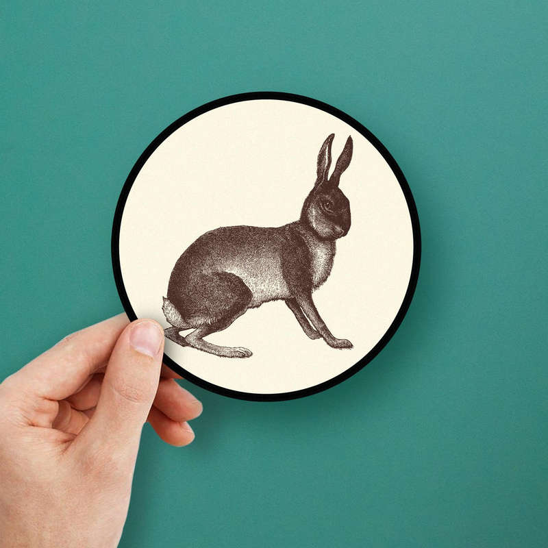 Bring a touch of timeless charm to your space with this vintage rabbit vinyl sticker. Featuring a beautifully detailed brown hare illustration on a soft beige background, this decal evokes elegance and a love for nature. Perfect for cars, laptops, walls, or home decor, it blends seamlessly into rustic, farmhouse, or nature-inspired settings. Crafted from premium, durable vinyl, the sticker resists fading and peeling, making it suitable for both indoor and outdoor use. With easy application and residue-free removal, this versatile decal is available in multiple sizes, offering endless possibilities to enhance your space.