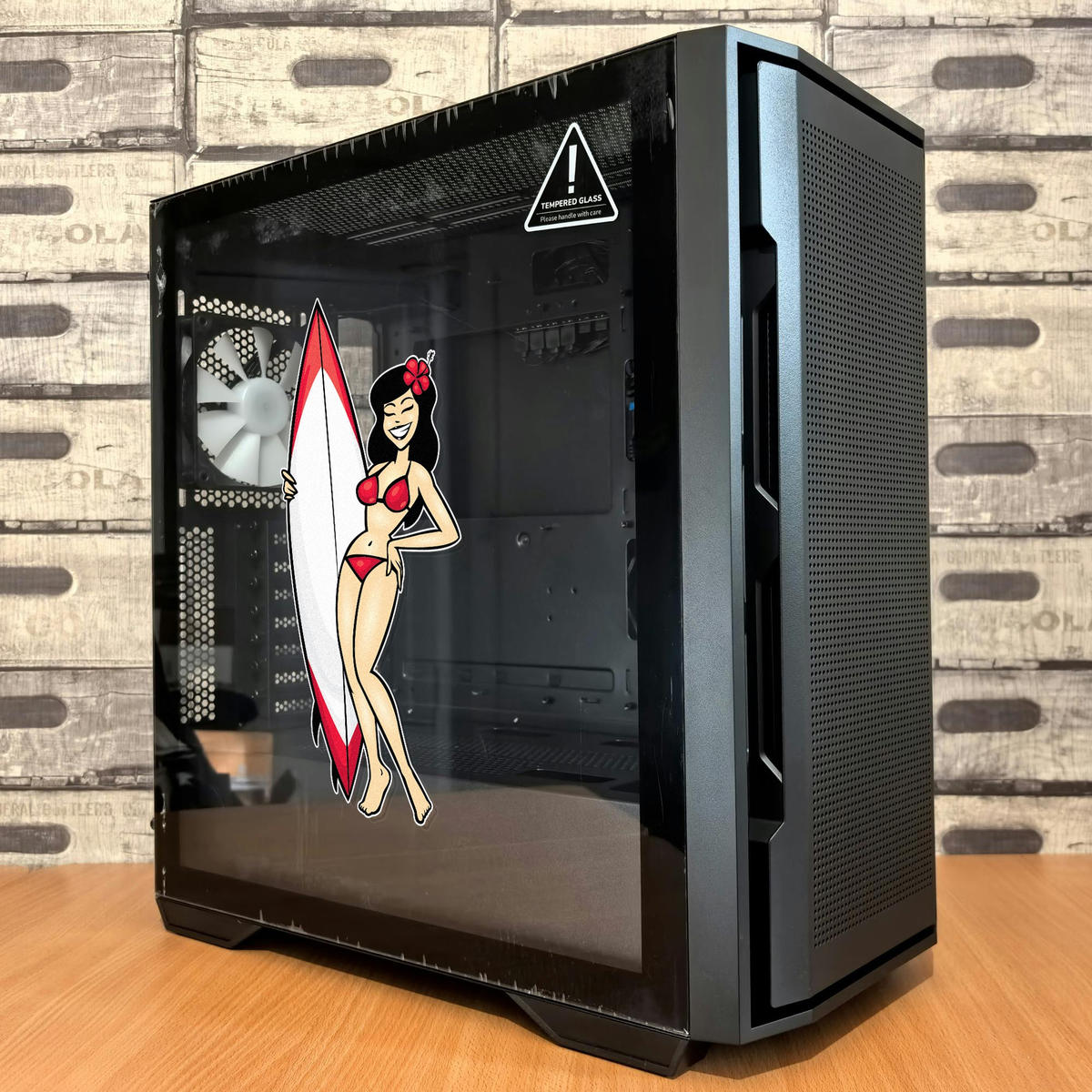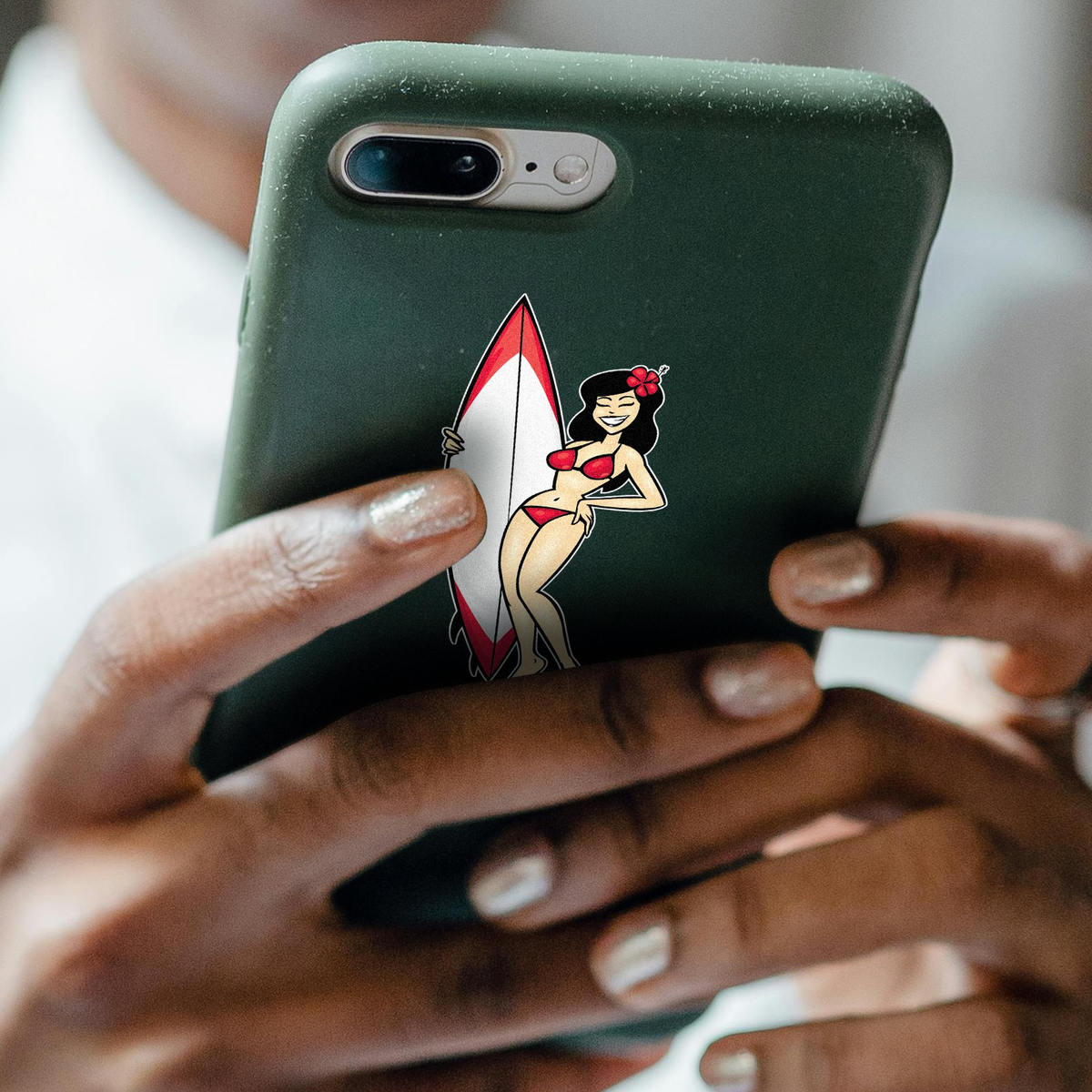 Capture the carefree spirit of the beach with this vintage surfer girl sticker! Featuring a retro pin-up style, this bold and colorful decal is perfect for anyone looking to bring a bit of tropical flair to their everyday items. Made from high-quality weatherproof vinyl, this sticker is designed to withstand outdoor conditions, making it ideal for surfboards, cars, and even laptops. Available in multiple size options, this vibrant decal adds a playful touch to any surface and is perfect for beach lovers and adventurers alike.