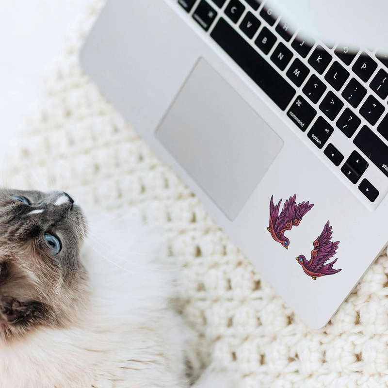 Add a touch of vintage charm to your belongings with this set of elegant swallow bird stickers. Featuring intricate purple and pink designs, these decals are perfect for personalizing laptops, cars, water bottles, and more. Crafted from high-quality, weather-resistant vinyl, they ensure durability and vibrant colors even in outdoor conditions. The easy peel-and-stick application allows for hassle-free decorating without leaving residue. Available in multiple size options, these artistic decals are an excellent gift for nature enthusiasts, vintage art lovers, or anyone looking to add a graceful, stylish accent to their accessories.