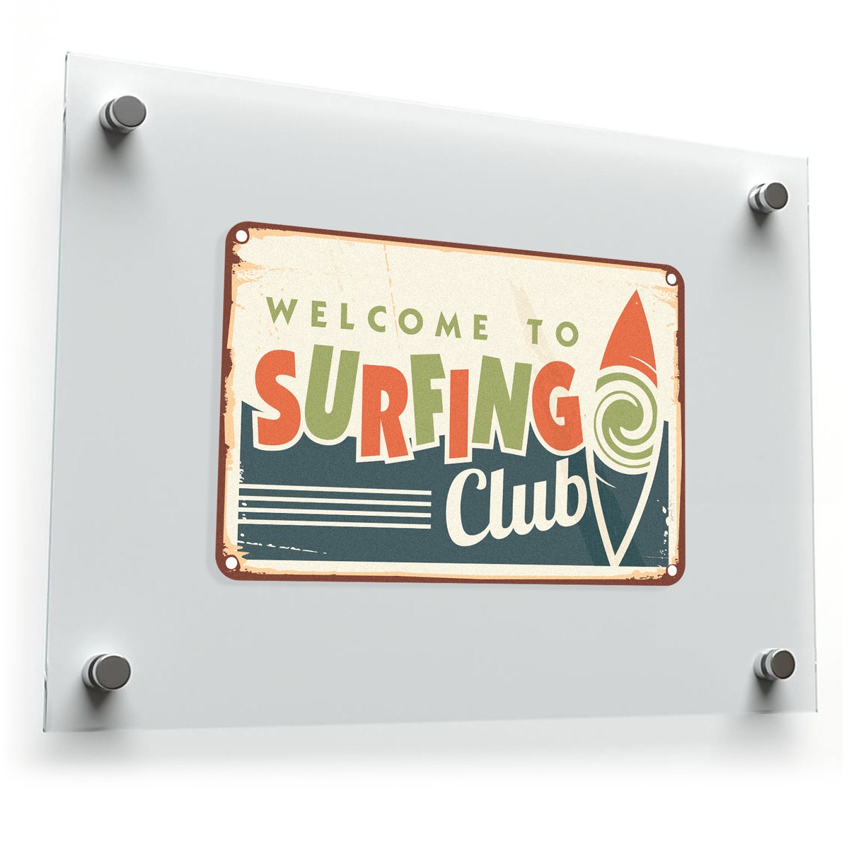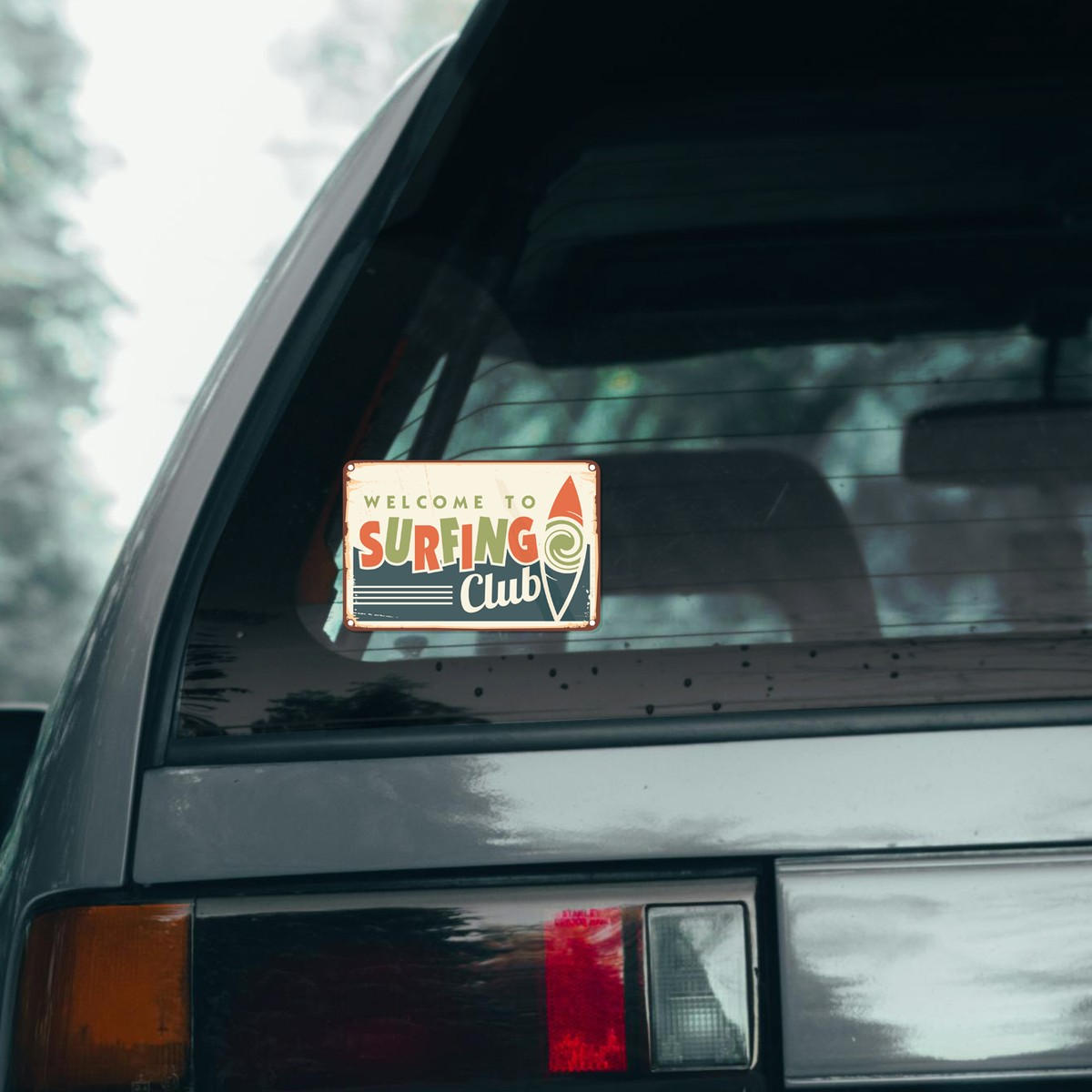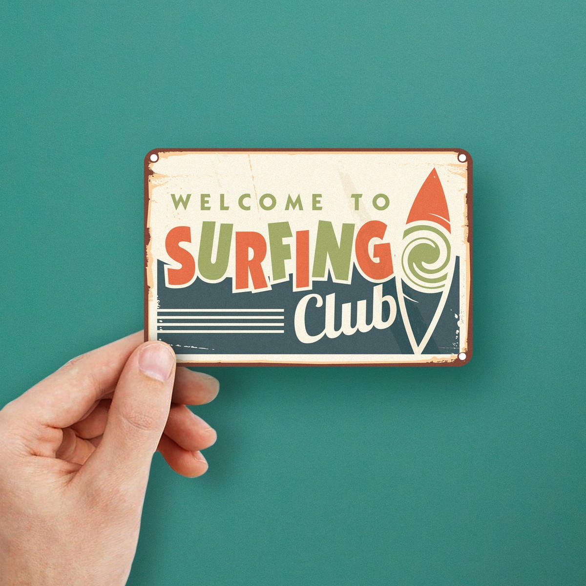 Vintage “Welcome to Surfing Club” Sign 🏄 Vintage Surfing Vibes: This retro “Welcome to Surfing Club” sticker captures the laid-back, beachy feel of surf culture, making it a perfect addition to your walls, beach shack, or surf shop. 🏄