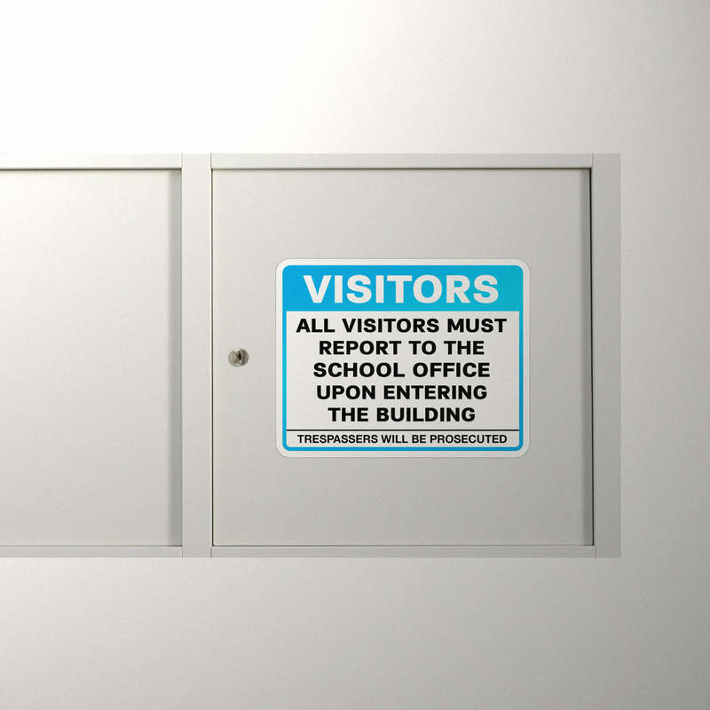 Ensure a safe and organized environment with this “Visitors Report to Office” sticker, featuring a clear directive for all visitors to check in at the school office upon entry. Highlighting a stern warning that “Trespassers Will Be Prosecuted,” this safety sign reinforces compliance and deters unauthorized access. Designed with a high-contrast blue and white color scheme, it ensures visibility and readability even from a distance. Crafted from durable, weatherproof vinyl, this decal withstands wear and tear, making it suitable for both indoor and outdoor use. Easy to install on doors, walls, or glass surfaces, it’s available in multiple size options to fit your specific needs.