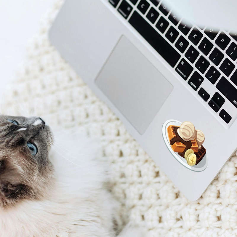 Waffles and Ice Cream Vinyl Sticker 🧇 Sweet Dessert Design: Celebrate your love for treats with this charming waffle and ice cream sticker, featuring mouthwatering details like chocolate syrup and banana slices. 🧇