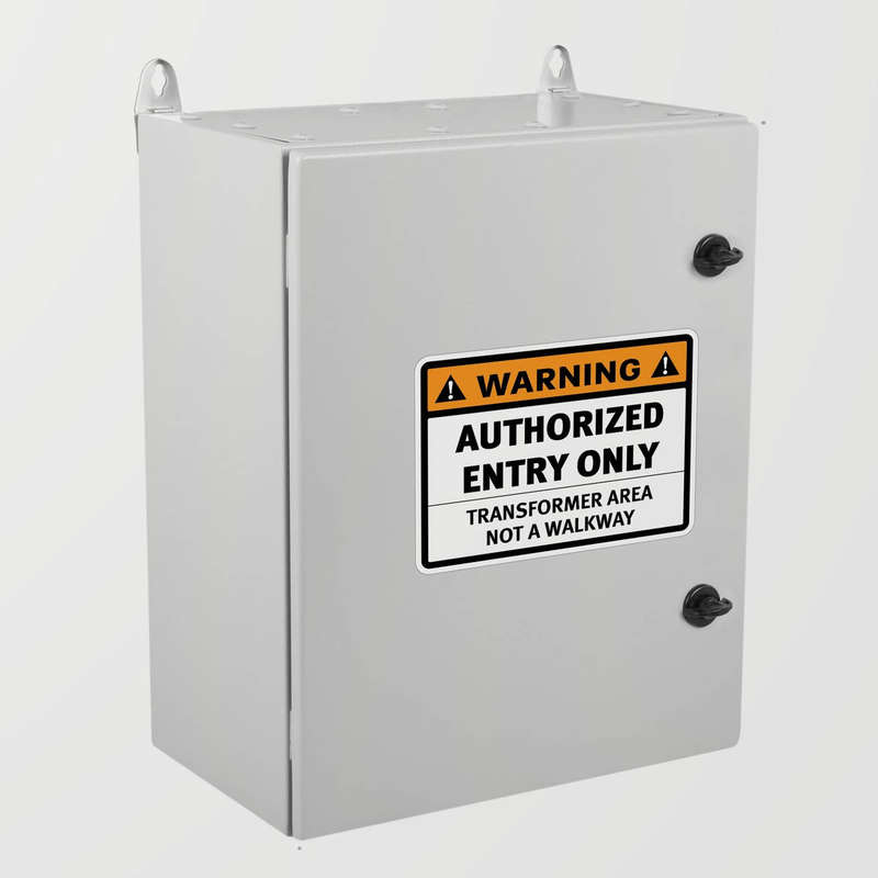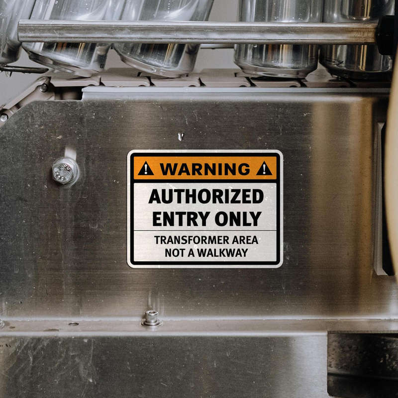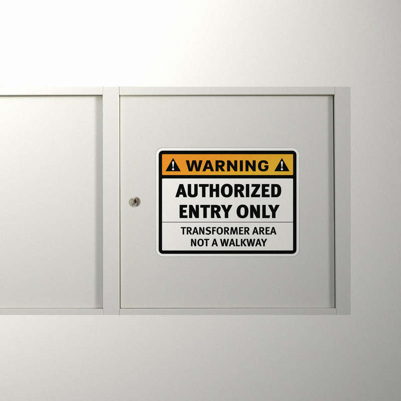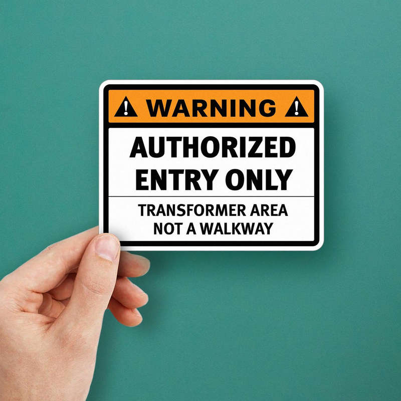 Keep your workspace safe and compliant with this “Warning: Authorized Entry Only – Transformer Area, Not a Walkway” vinyl sticker. Designed for maximum visibility, its bold black and orange text stands out against a white background, effectively communicating critical safety information. Crafted from durable, weather-resistant vinyl, this safety sign is ideal for both indoor and outdoor environments. Featuring a strong adhesive backing, it adheres securely to various surfaces like metal, glass, or plastic. Available in multiple sizes, this decal ensures safety and awareness in areas of all dimensions, helping you maintain a secure and hazard-free environment.