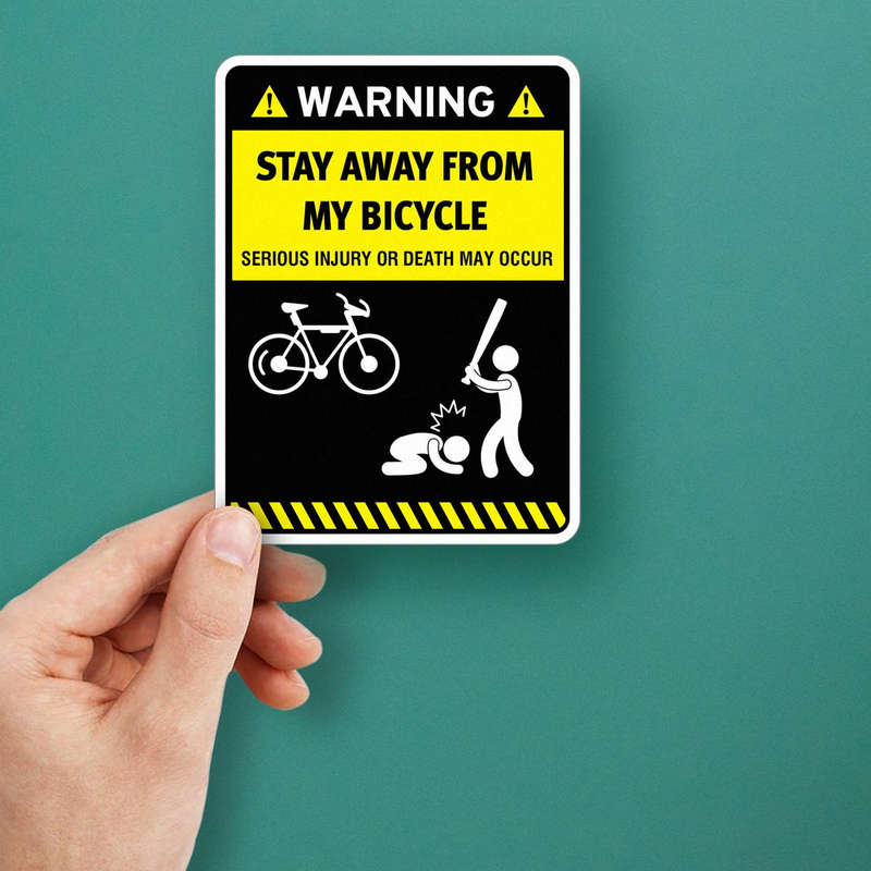 Ensure the security of your bike with this bold “Stay Away from My Bicycle” warning sticker, designed to deter unauthorized handling. Featuring a high-visibility black and yellow design and a clear “Serious Injury or Death May Occur” warning, this vinyl decal delivers a strong message to potential intruders. Ideal for outdoor use, it’s crafted from durable vinyl that resists weather and wear, making it suitable for bikes, helmets, and other gear. With easy peel-and-stick application, this sticker is flexible for both temporary and permanent use, providing reliable bike security.
