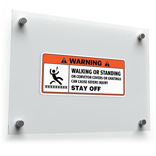 Ensure the safety of your workplace with this “Warning: Stay Off Conveyor Covers” safety sticker. Designed to prevent severe injuries, this bold decal reminds workers to avoid walking or standing on conveyor covers or gratings. Made from durable, industrial-grade vinyl, it can withstand tough environments while maintaining its visibility. The strong adhesive backing ensures easy application on machinery or safety barriers. This warning sticker plays a vital role in maintaining workplace safety by reducing the risk of accidents and keeping everyone informed of potential hazards. Available in multiple size options for various uses.