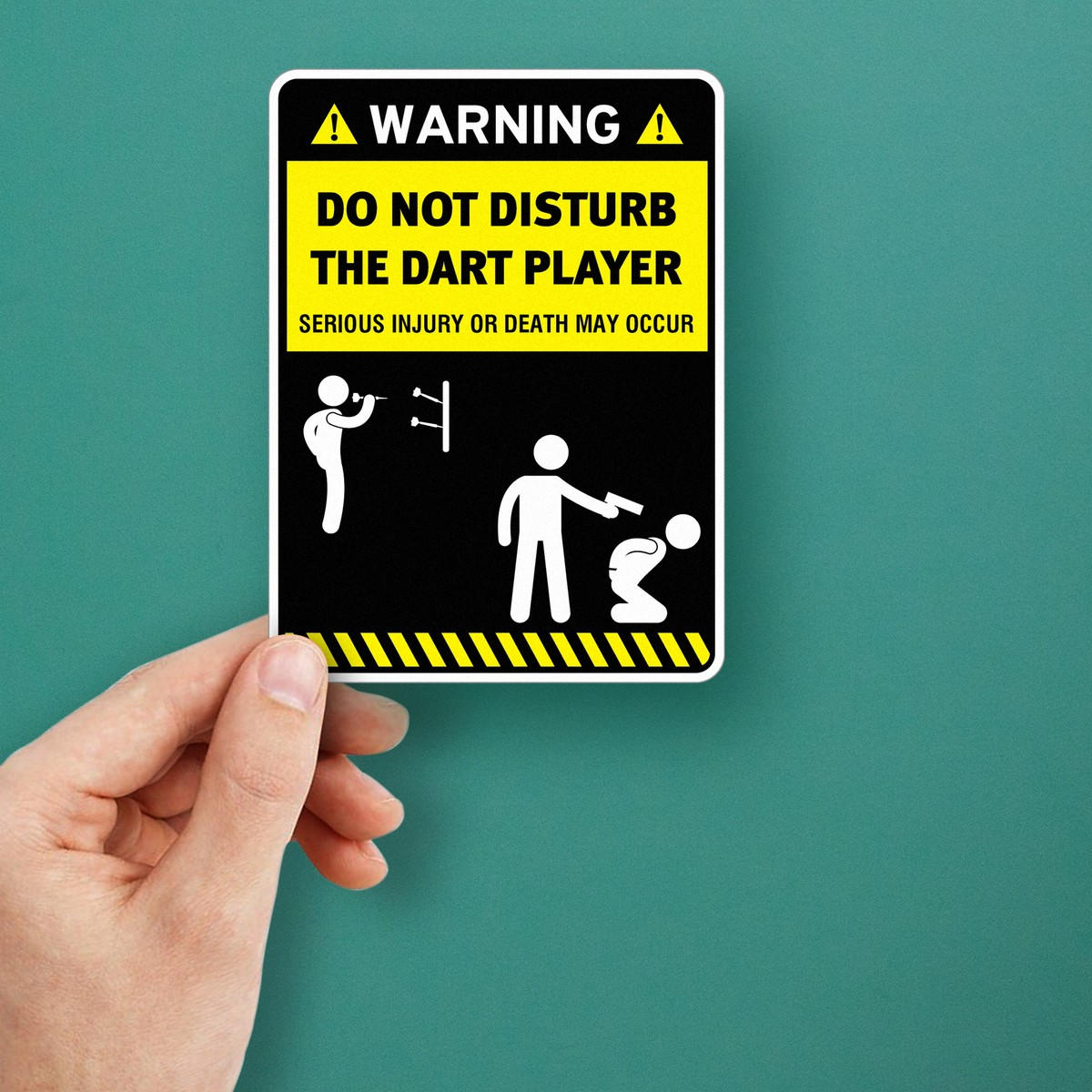 Add a humorous touch to your dart room or game area with this “Warning: Do Not Disturb the Dart Player” vinyl sticker. Designed to bring a fun vibe to any space, this durable sticker is perfect for man caves, dartboards, or game rooms. Made from high-quality, weatherproof vinyl, it resists fading, water, and UV rays, making it suitable for both indoor and outdoor use. Its easy peel-and-stick application allows for quick installation on walls, doors, or dartboard surfaces. Enhance your space with this lighthearted yet bold sign, perfect for any dart enthusiast.