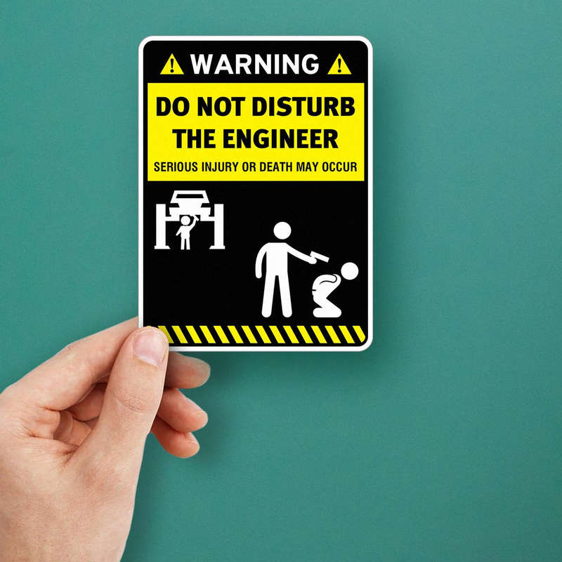 Warning Do Not Disturb the Engineer Vinyl Sticker ⚙️ Humorous Warning Sign: This “Do Not Disturb the Engineer” vinyl sticker combines humor with a clear warning, making it a fun yet effective way to keep distractions at bay in garages or workspaces. ⚙️