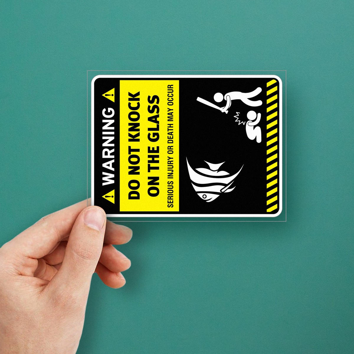 “Warning: Do Not Knock on the Glass” Sticker 🐠 Humorous Warning: This “Do Not Knock on the Glass” sticker delivers a lighthearted but clear message to protect your aquarium or glass display from unwanted disturbances. 🐠