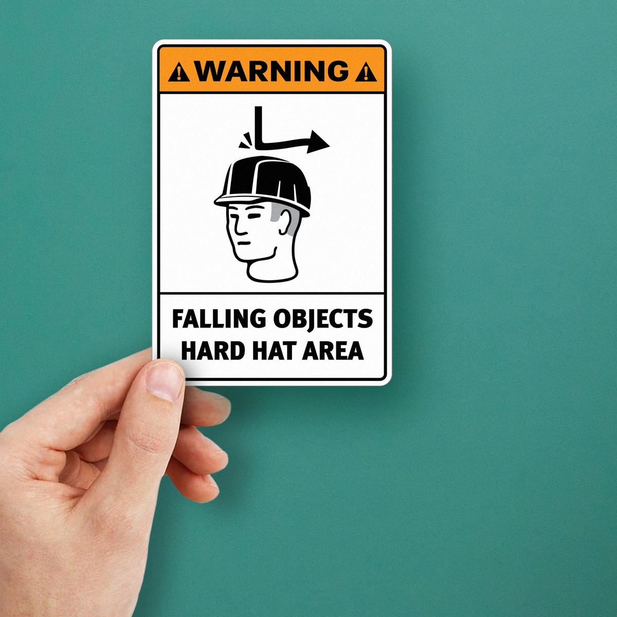Keep your workplace safe with this highly visible “Warning: Falling Objects – Hard Hat Area” sign. Designed to promote safety in industrial environments, this durable vinyl decal is waterproof and long-lasting, ensuring it remains clear and effective both indoors and outdoors. Ideal for construction sites, factories, and warehouses, this sign serves as a constant reminder for workers to wear their hard hats in areas where falling objects pose a hazard. Available in multiple sizes, it can be easily applied and removed without leaving residue, making it perfect for both temporary and permanent use.