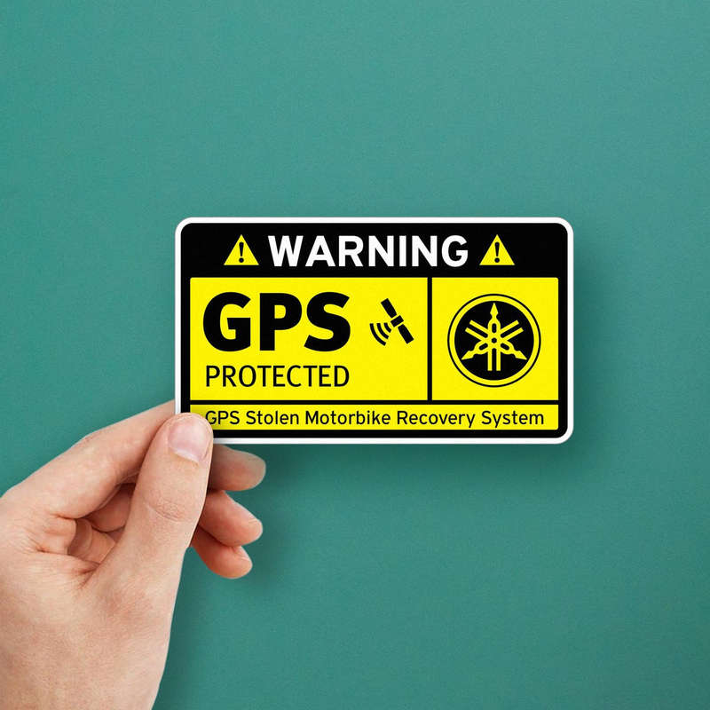 Enhance your motorbike’s security with this Warning GPS Protected sticker, a bold deterrent that communicates “GPS Stolen Motorbike Recovery System” in high-visibility text and symbols. The striking yellow and black design ensures immediate attention, while the durable fade-resistant vinyl provides long-lasting use, even in harsh outdoor conditions. Ideal for motorbikes, helmets, garages, or other flat surfaces, this versatile decal is a reliable addition to your security measures. Available in various sizes, it offers flexibility for personalized placement, ensuring that your motorbike and equipment are protected with a clear and professional warning.