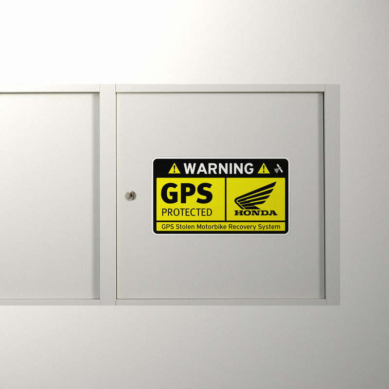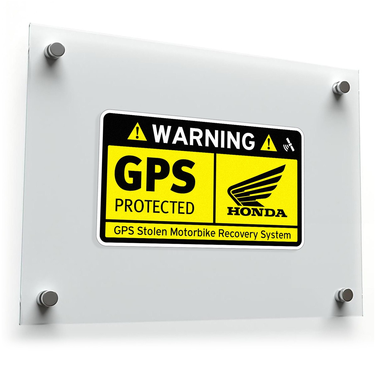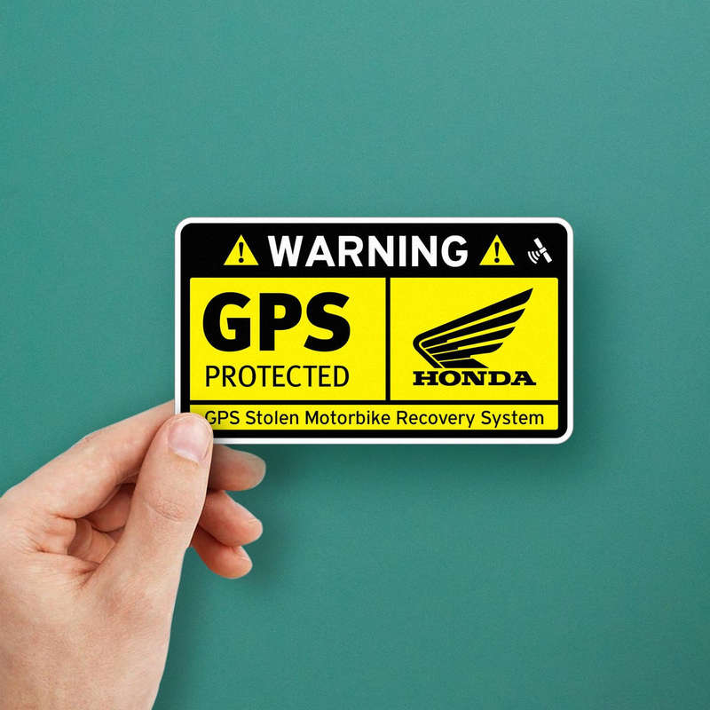 Ensure your vehicle’s safety with this GPS Protected warning vinyl sticker featuring the iconic Honda logo. With its bold black text on a bright yellow background, this high-visibility decal acts as a strong deterrent against theft, making it a practical and stylish addition to motorcycles, cars, or any vehicle equipped with a GPS recovery system. Crafted from durable, weatherproof vinyl, it maintains its clarity and professional look even in challenging conditions. Easy to apply and remove, this sticker adheres seamlessly without bubbles and leaves no residue. Protect your investment with this sleek and functional safety sticker.