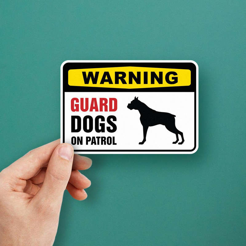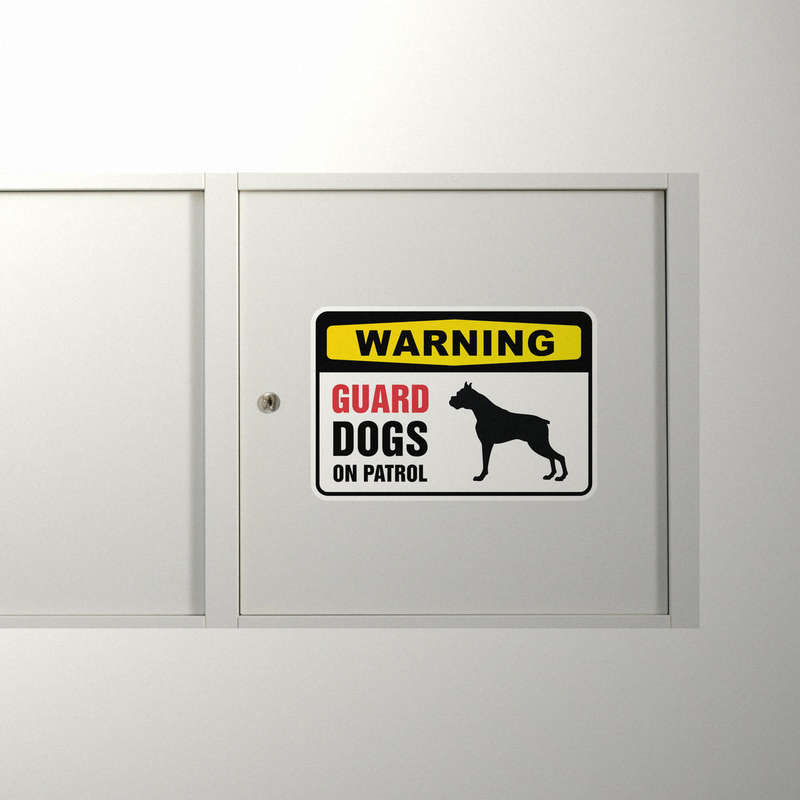 Add an extra layer of security to your property with this durable “Guard Dogs on Patrol” sticker. Featuring bold red and black text on a striking yellow background, this high-visibility decal serves as an effective deterrent against potential intruders. The sticker showcases a sleek dog silhouette, merging a professional look with practical safety. Made from premium-quality vinyl, it withstands harsh weather conditions, ensuring durability for indoor and outdoor applications. Easy to apply, it adheres securely to doors, windows, or vehicles without hassle. Available in multiple size options, this sticker is a must-have for safeguarding homes, businesses, and vehicles with style and reliability.