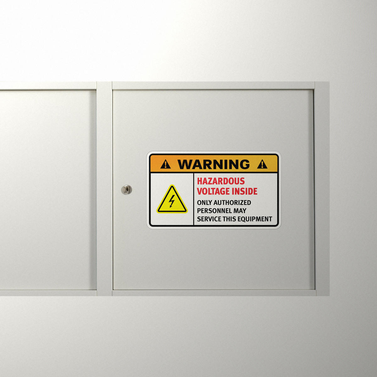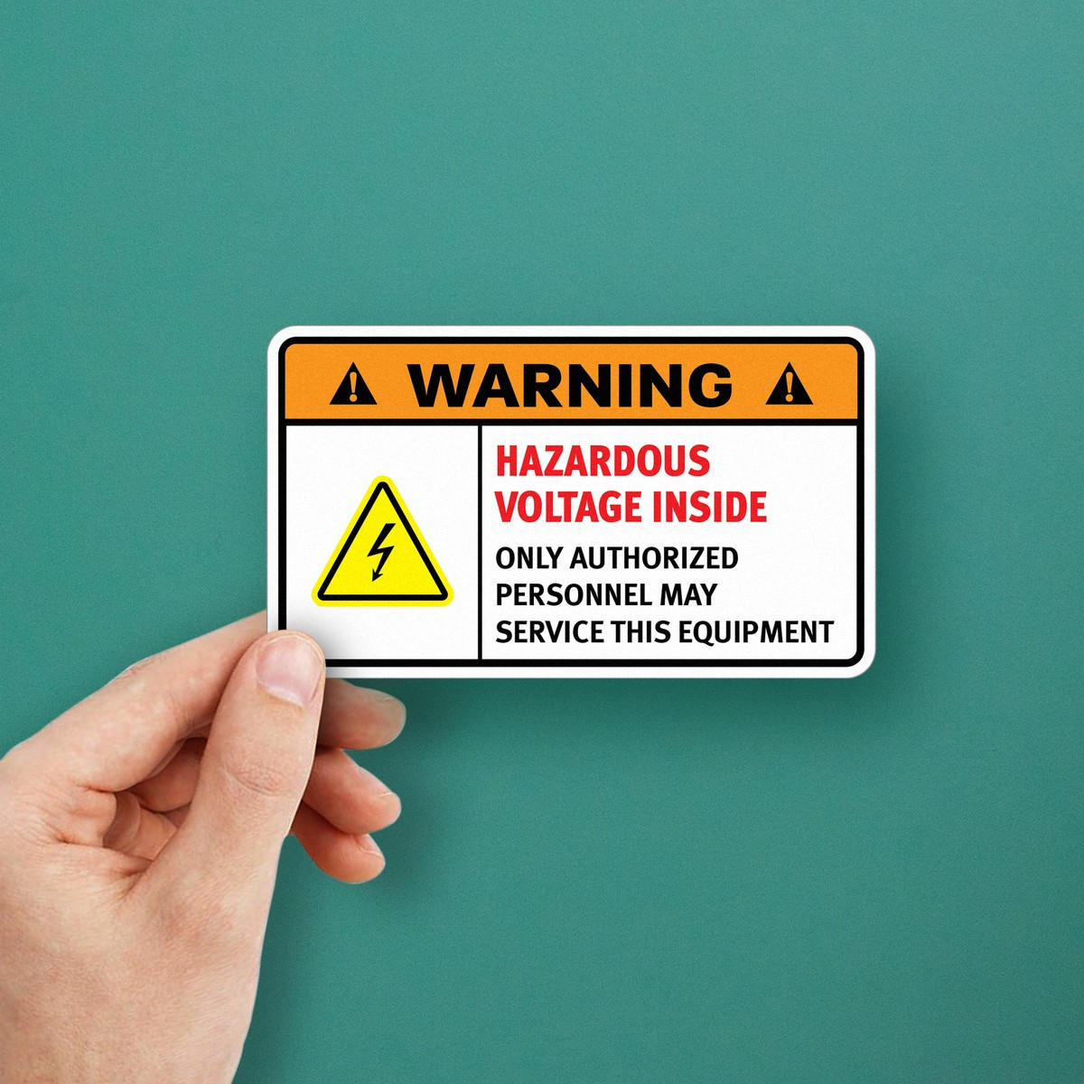 Ensure safety and compliance with this high-visibility “Hazardous Voltage Inside” warning sticker. Crafted from durable, weatherproof vinyl, this decal is perfect for industrial equipment, electrical boxes, and high-voltage areas. The clear, bold message helps prevent unauthorized personnel from servicing equipment, reducing the risk of accidents. Ideal for both indoor and outdoor use, this safety sticker is built to last in tough environments, resisting weathering and fading over time. Easy to apply, it provides an essential layer of safety for any industrial or electrical setting.