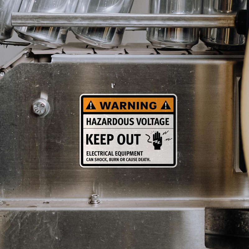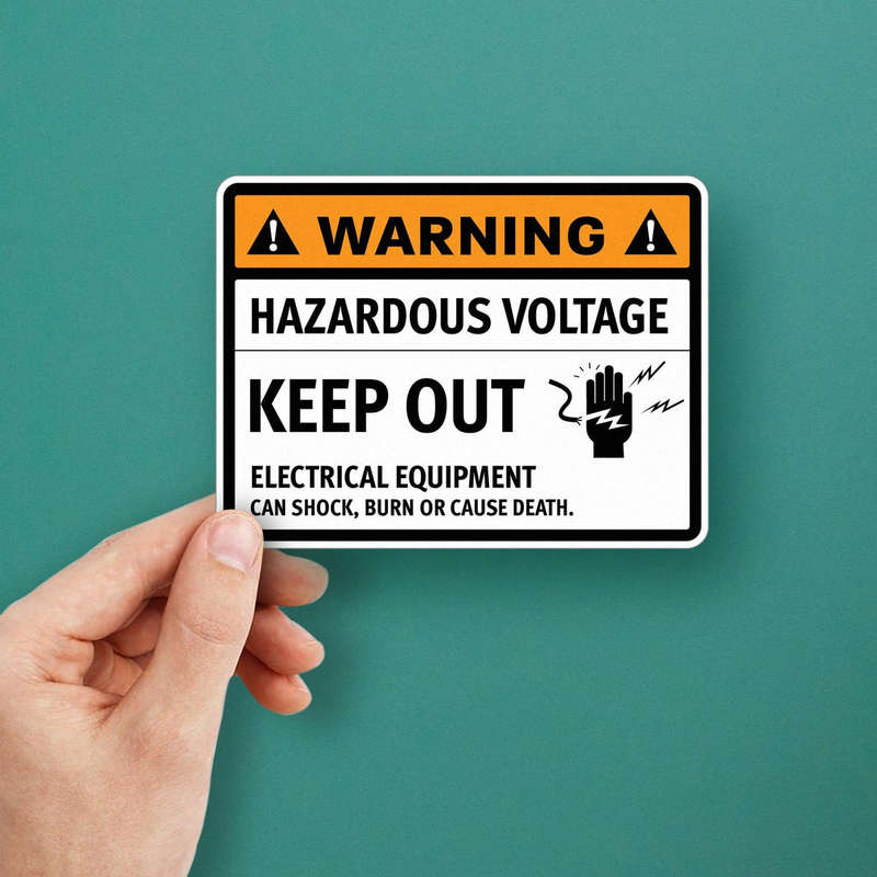 Ensure safety around electrical equipment with this “Warning Hazardous Voltage Keep Out” sticker, designed to alert personnel to the presence of dangerous high voltage. The bold orange, black, and white design, combined with clear symbols, makes this decal highly visible, effectively communicating the need to avoid certain areas. Made from durable, weather-resistant vinyl, it is ideal for both indoor and outdoor environments in industrial and electrical settings. Available in multiple sizes, this sticker is easy to apply on various surfaces, serving as a dependable reminder to promote safety and compliance in high-risk zones.