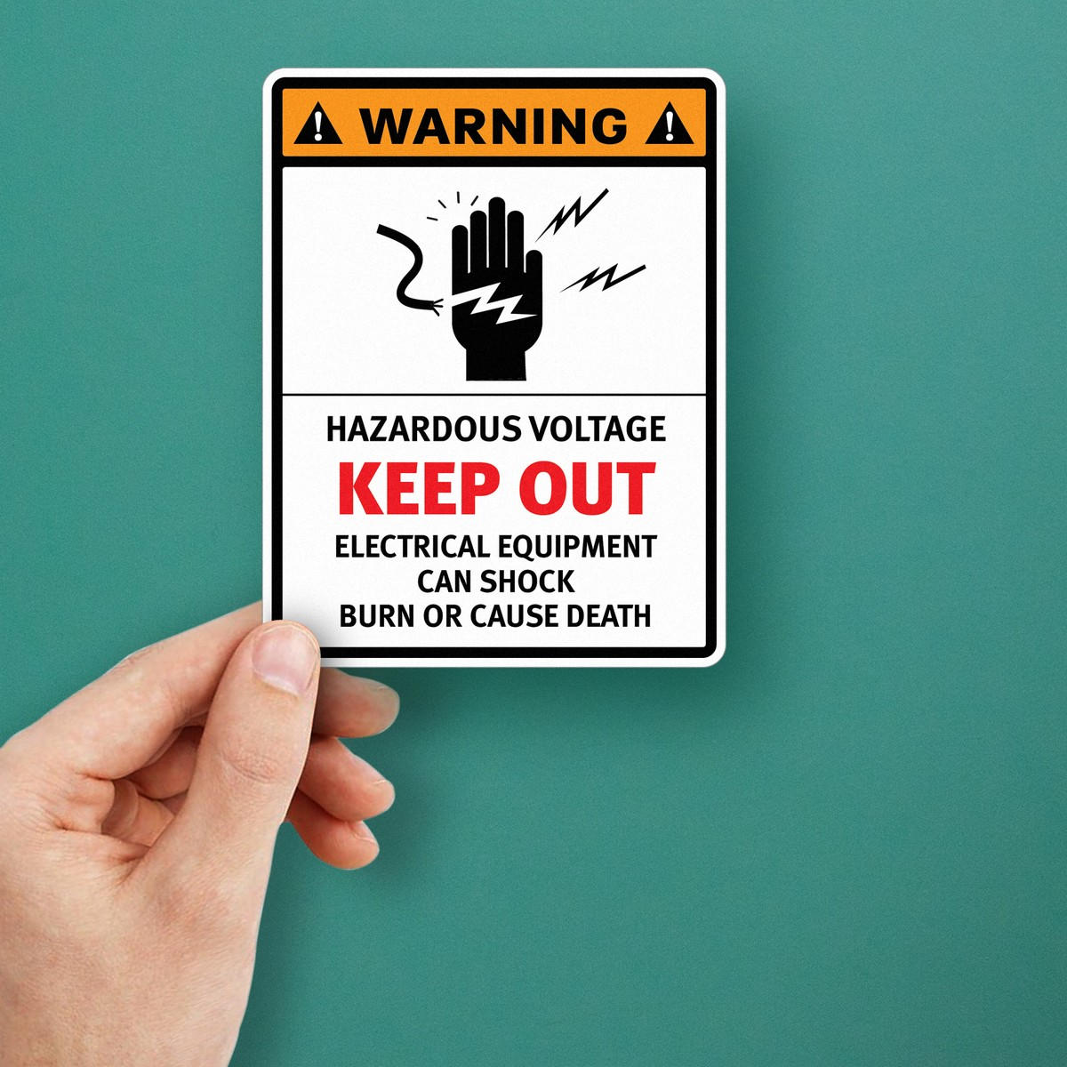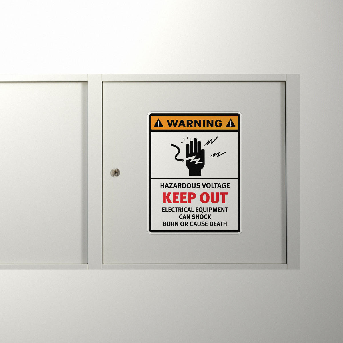 Promote safety and prevent accidents with this durable “Warning Hazardous Voltage Keep Out” sticker. Designed for areas with high-voltage electrical equipment, this vinyl safety decal ensures clear communication of potential shock and burn hazards. Made from weather-resistant vinyl, this sticker is suitable for both indoor and outdoor use. Its strong adhesive backing allows for easy application on walls, doors, or equipment, and it can be removed cleanly without damaging surfaces. Available in multiple sizes, this decal is a critical tool for ensuring electrical safety in industrial, commercial, and construction settings.
