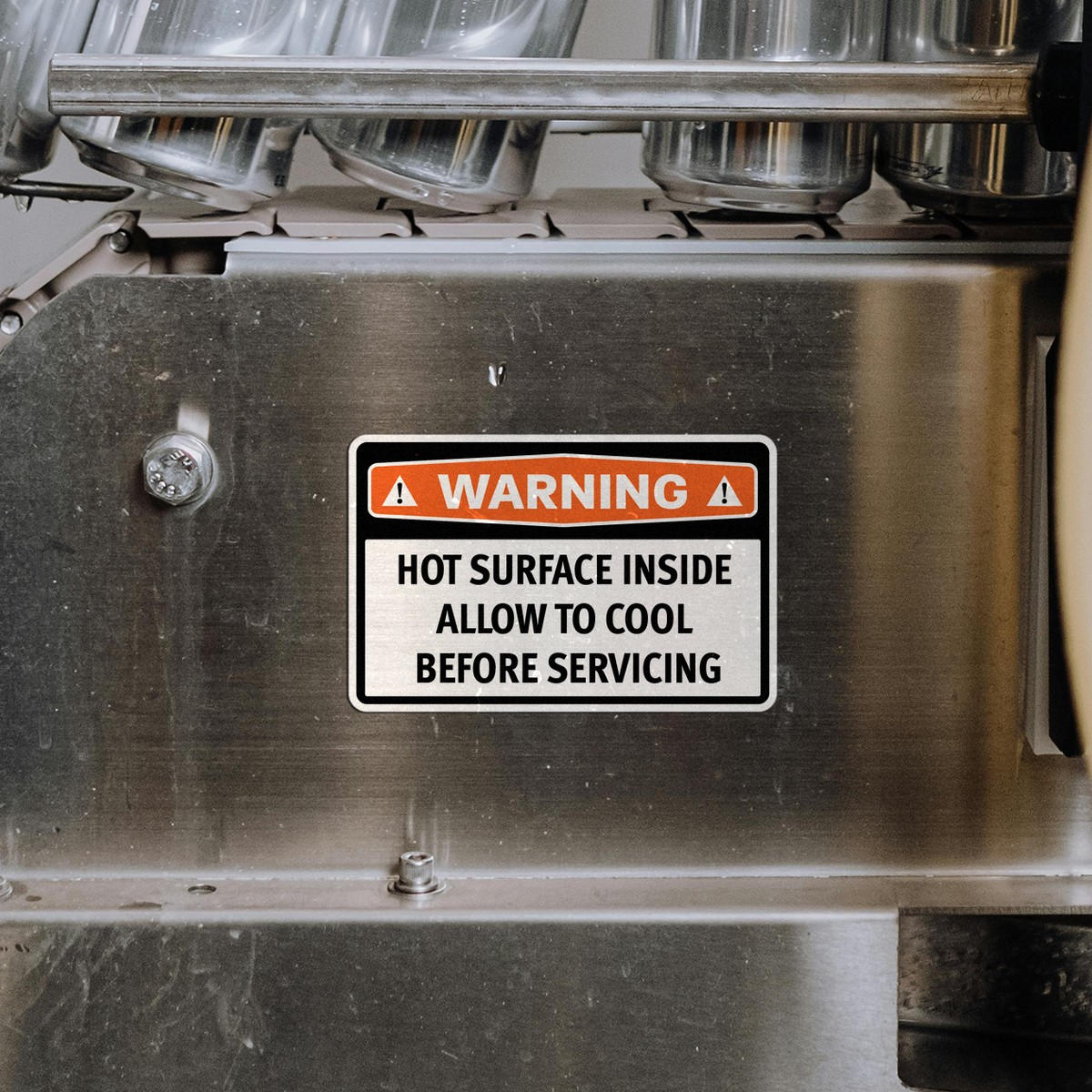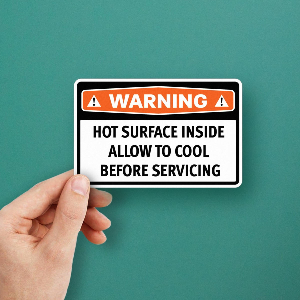 “Warning: Hot Surface Inside” Vinyl Sticker ⚠️ Clear Hot Surface Warning: This “Warning: Hot Surface Inside” sticker provides a clear and essential warning for industrial environments, helping prevent accidental burns or injuries. ⚠️