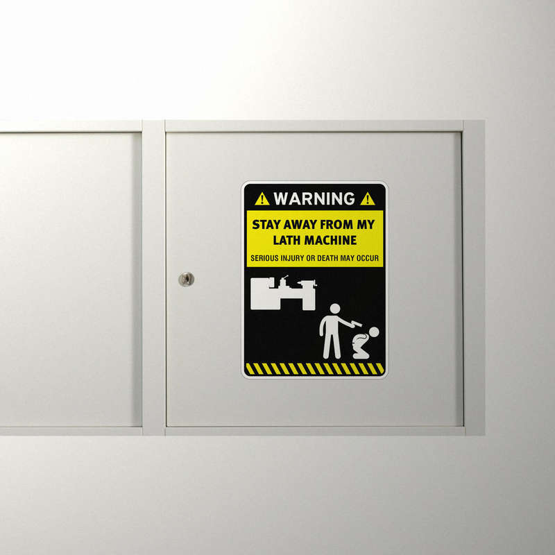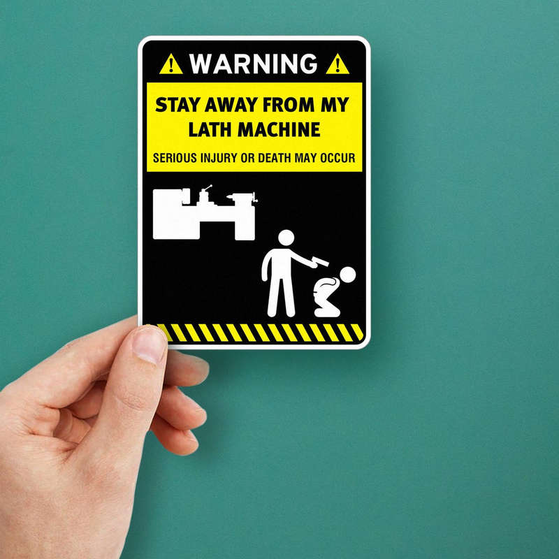Enhance workplace safety with this warning lath machine sign sticker, featuring a bold yellow and black design that conveys a clear message: “Stay Away From My Lath Machine – Serious Injury or Death May Occur.” Designed for industrial and workplace environments, this high-quality vinyl decal is resistant to fading, peeling, and water, ensuring long-lasting performance in harsh conditions. Easy to apply to machinery, walls, or doors, it adheres securely and removes without residue. A practical safety solution, this sticker ensures visibility and helps maintain safe practices around potentially dangerous equipment.