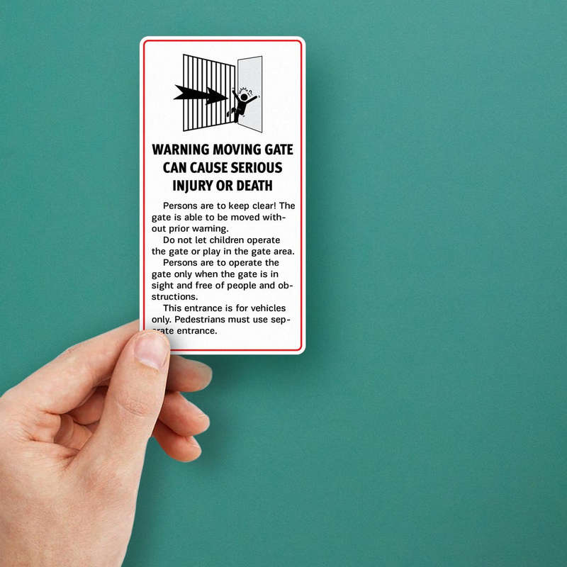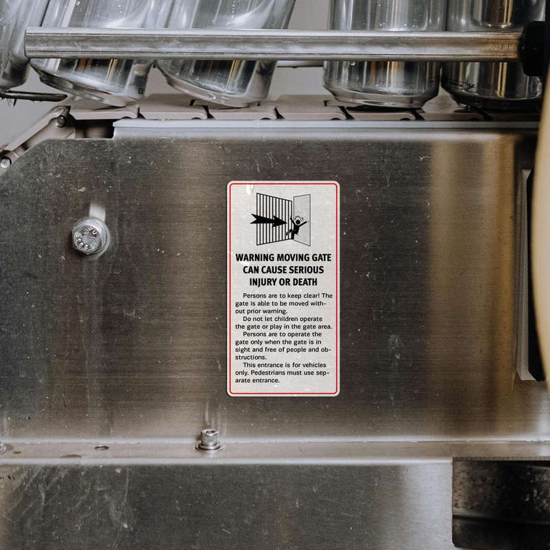 Warning Moving Gate Sticker ⚠️ High-Impact Safety Notice: This “Warning Moving Gate Can Cause Serious Injury or Death” decal provides crucial guidance for keeping people safe around automated gates. Designed to grab attention and reinforce caution in high-risk areas. ⚠️