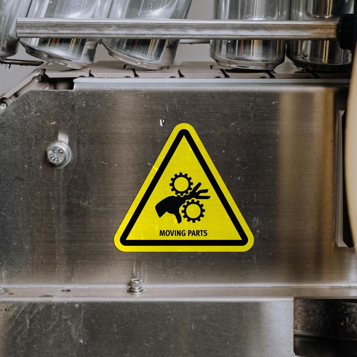 Ensure workplace safety with this high-visibility “Warning Moving Parts” sticker. Designed for use on industrial machinery and in hazardous areas, this vinyl decal provides a bold, clear warning about moving parts, helping to prevent accidents. Made from durable, weatherproof vinyl, it can withstand harsh conditions, making it suitable for both indoor and outdoor use. Easy to apply and remove, it adheres smoothly to machinery and surfaces without leaving residue. Available in multiple size options, this caution sticker is essential for promoting safety in work zones and industrial settings.
