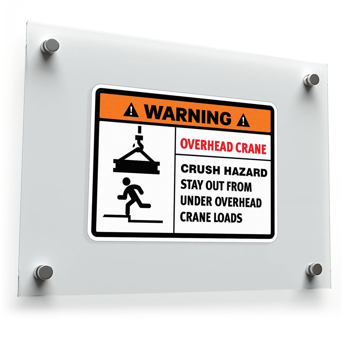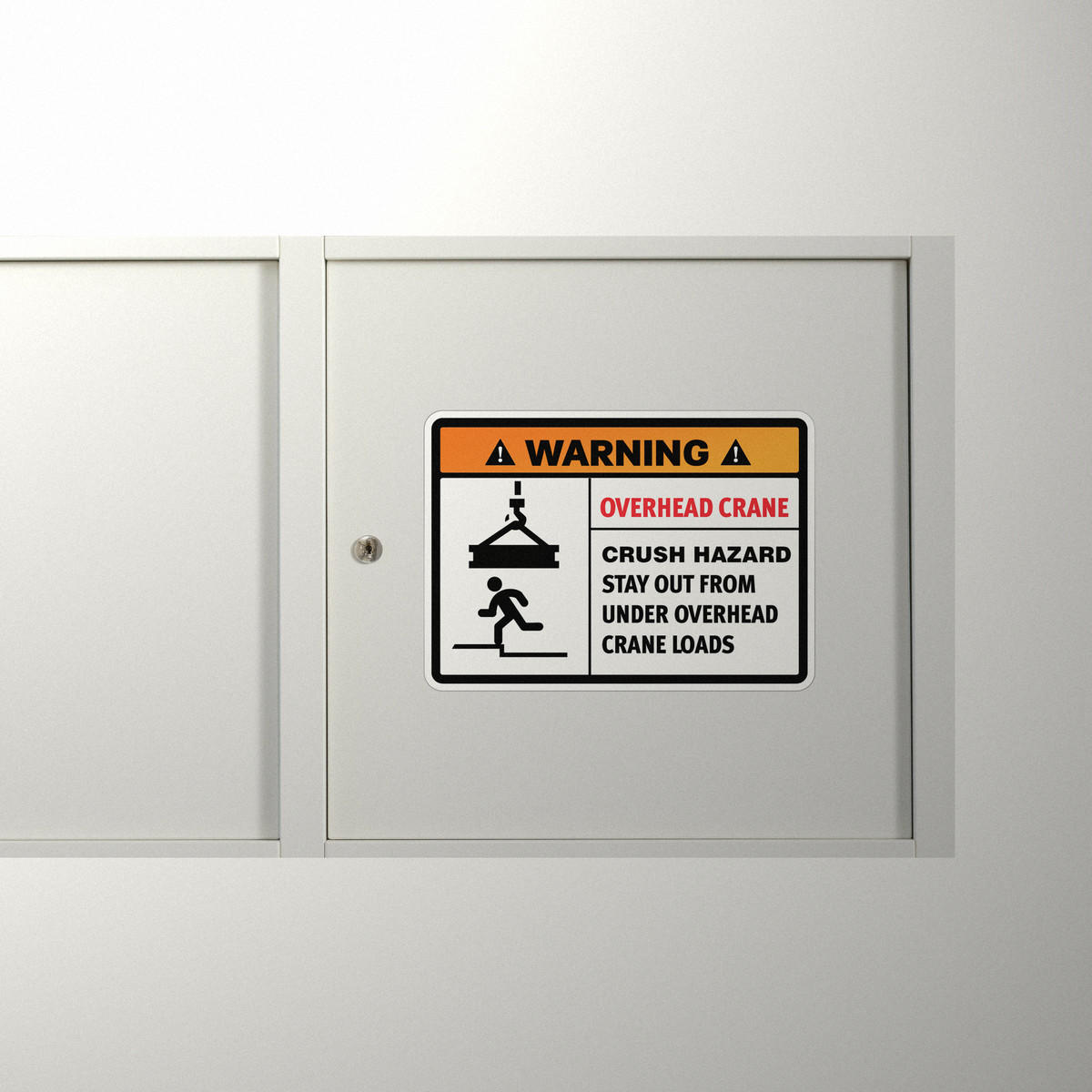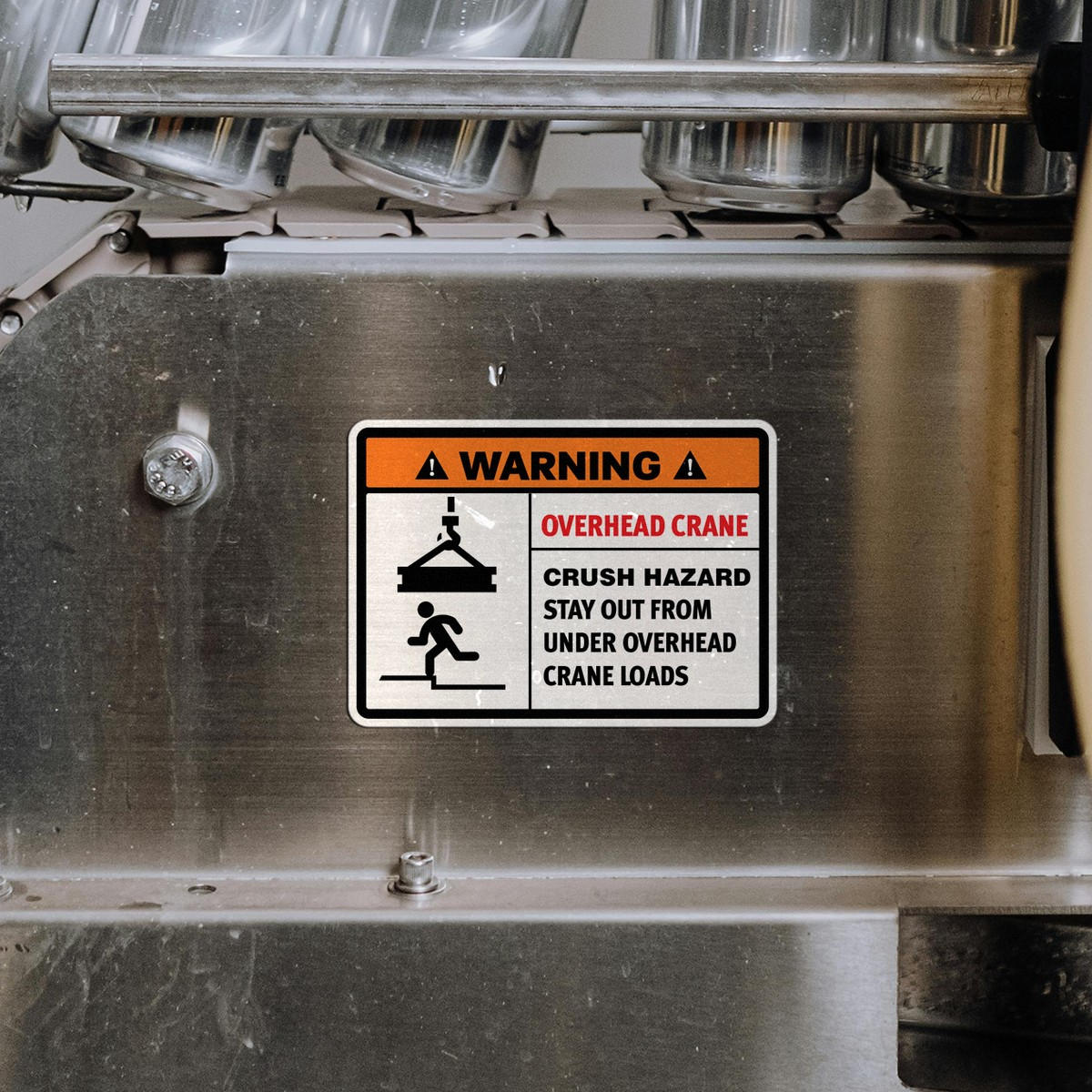 Ensure workplace safety with this high-visibility overhead crane warning sticker. Designed to communicate critical safety messages, this durable vinyl decal is perfect for industrial settings where overhead crane loads pose a potential hazard. Made from weatherproof materials, this decal is built to withstand the harsh conditions of both indoor and outdoor environments. Its bold design and clear messaging provide maximum visibility, helping to prevent accidents and protect employees. Easy to apply on flat surfaces, this safety decal is an essential addition to any industrial workspace.