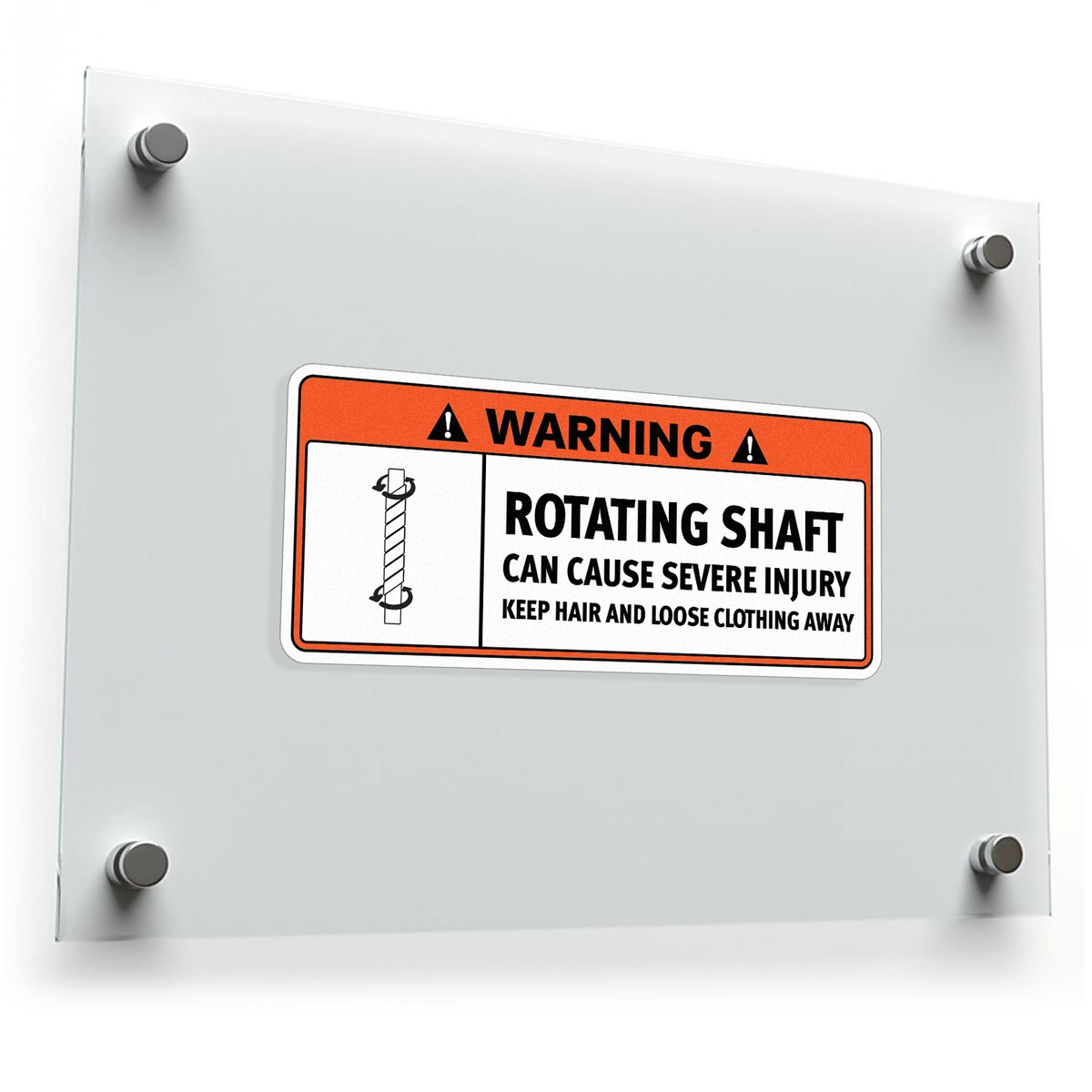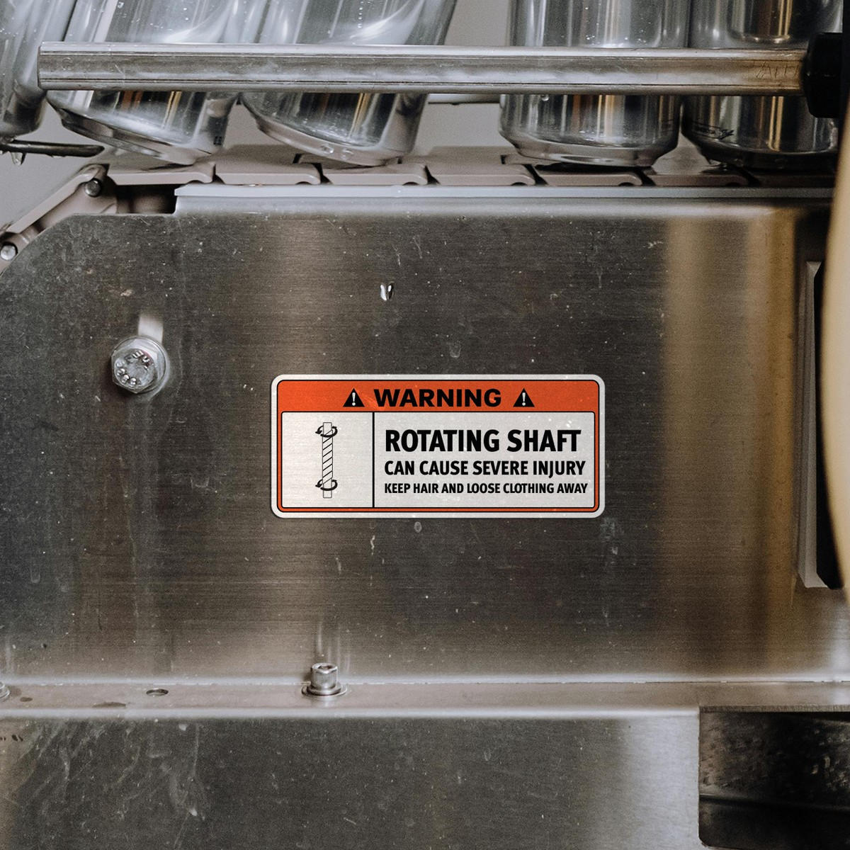 Promote workplace safety with this high-visibility “Warning: Rotating Shaft” safety sticker. Designed to prevent severe injuries, this decal serves as a critical reminder for employees to keep hair and loose clothing away from dangerous rotating machinery. Made from durable, weatherproof materials, this decal is suitable for both indoor and outdoor use. Easy to apply with a strong adhesive backing, it ensures lasting placement on machinery or in high-risk areas. Available in multiple size options, this warning sticker is essential for maintaining safety and preventing accidents in industrial environments.