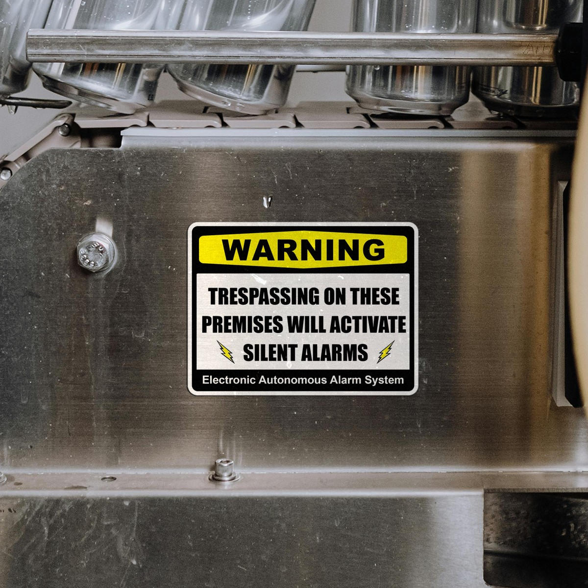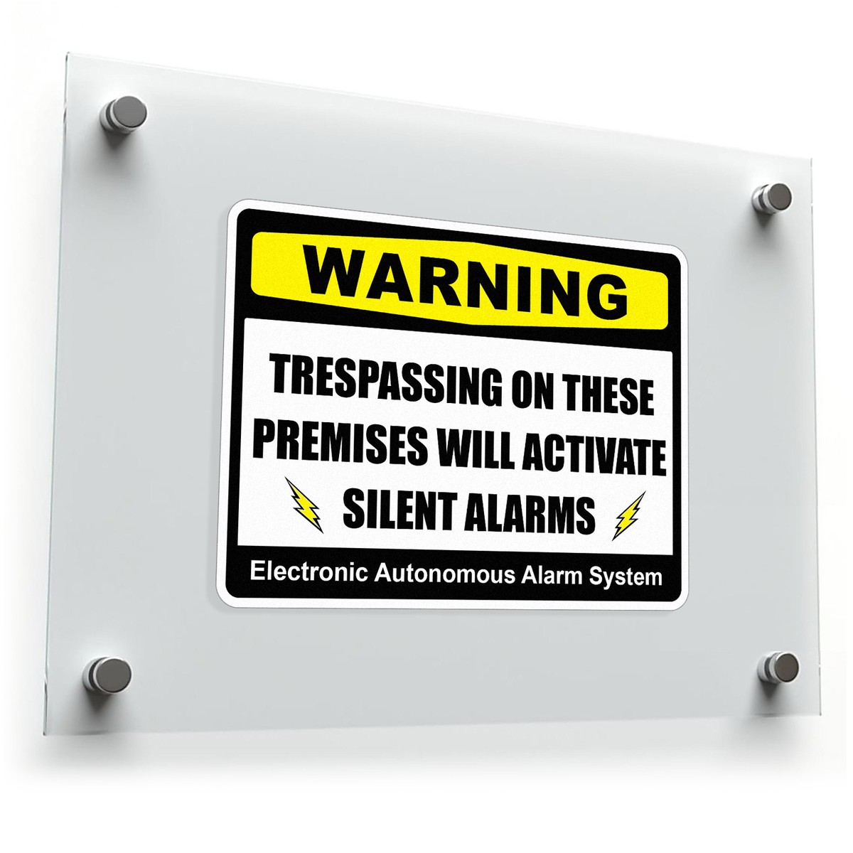 Increase your property security with this bold “Warning: Silent Alarm” sign sticker. Featuring a clear warning that trespassing will activate silent alarms, this vinyl decal is perfect for both homes and businesses, deterring potential intruders. Ideal for gates, doors, or windows, this high-quality sticker is weather-resistant, ensuring it remains visible and durable over time. Whether you’re looking to protect residential or commercial property, this security sign is easy to apply and remove, offering flexibility without leaving residue. Available in multiple sizes, it’s an effective solution to enhance the safety of your space.