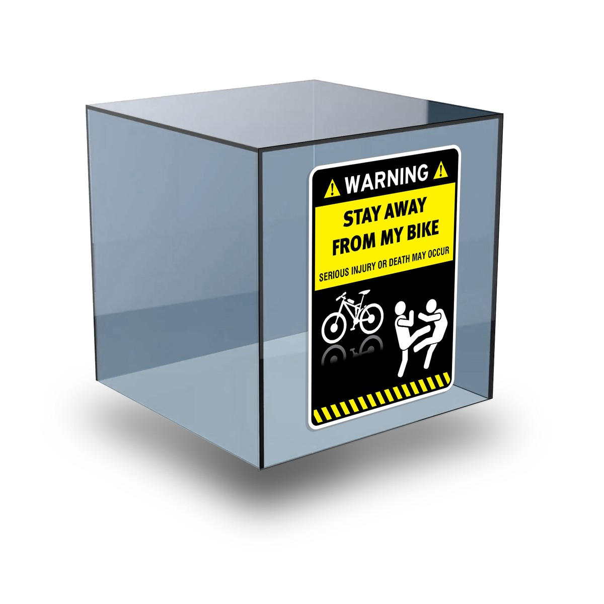 Add a layer of protection and humor to your bike with this “Warning: Stay Away From My Bike” sticker. Made from premium vinyl, this weatherproof and durable decal ensures your message stays visible in any conditions. Perfect for cyclists who want to deter unwanted attention while adding a personal touch to their bike, helmet, or gear. The bold design sends a clear and funny warning, combining humor with practicality. Available in multiple size options, this sticker applies easily and removes cleanly, making it the ideal accessory for any cycling enthusiast.