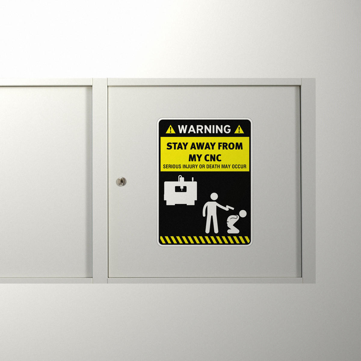 Bring a touch of humor to your workspace with this bold “Warning Stay Away from My CNC” safety sticker. Perfect for CNC operators, this decal offers both a playful and serious reminder to unauthorized individuals to steer clear of your machine. Designed with bright yellow and black colors, it captures attention easily, making it an ideal addition to any industrial setting. Crafted from weatherproof and durable vinyl, this sticker stands up to the elements while maintaining its vibrant appearance. Easy to apply, it’s a fun yet functional way to protect your CNC and keep your workspace safe. Available in multiple size options for versatility.