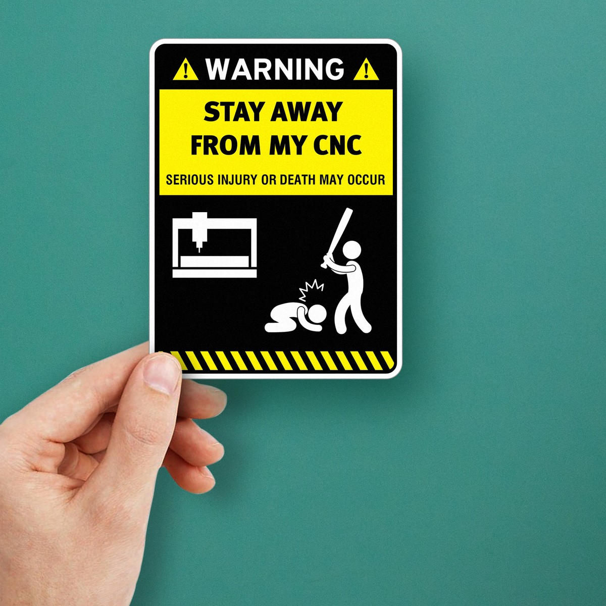 Protect your CNC machine and ensure workplace safety with this bold “Warning Stay Away From My CNC” sticker. Crafted from durable, waterproof vinyl, this decal offers a clear and direct warning to prevent unauthorized access, reducing the risk of accidents or injuries. Designed for industrial use, this safety sign decal adheres easily to CNC machines, equipment, or walls, and removes without leaving any sticky residue. Available in multiple sizes, this sticker is perfect for adding a visible, long-lasting warning in any workspace to protect both your machinery and your workers.