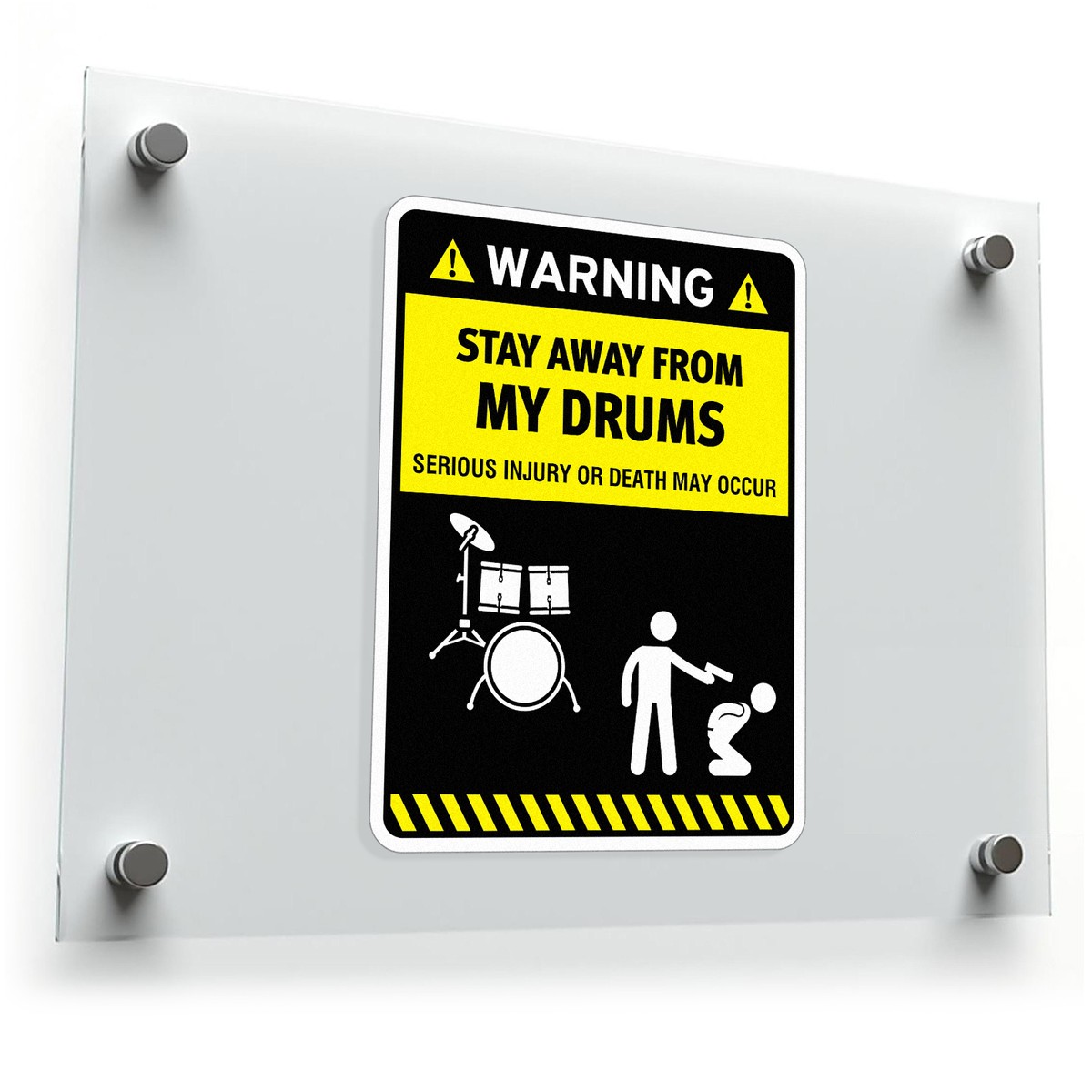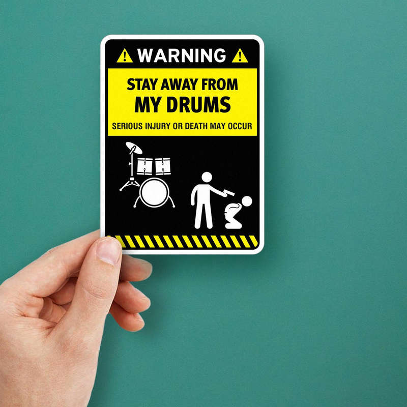 Inject humor and personality into your gear with this bold “Warning: Stay Away From My Drums” vinyl sticker. Featuring a striking yellow and black caution design with funny drum-themed graphics, this decal is ideal for drummers who want to protect their gear with a smile. Crafted from premium, weatherproof vinyl, it’s built to last indoors and outdoors, resisting fading and peeling. Whether applied to drum kits, cars, music gear, or studio walls, this versatile sticker stands out. Available in multiple sizes, it fits your creative needs, from small accents to bold displays. Easy to apply and remove, it’s a must-have for drumming enthusiasts.