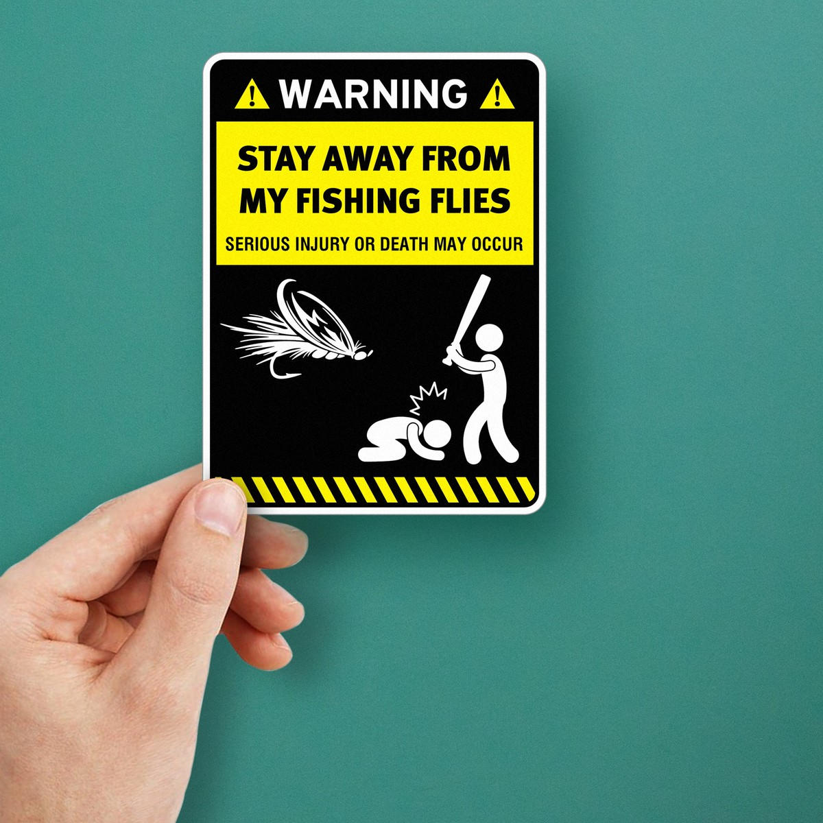 Warning Stay Away from My Fishing Flies Sticker ⚠️ Humorous Fishing Warning: This “Stay Away from My Fishing Flies” sticker adds a fun yet clear message for fishing enthusiasts, warning others to steer clear of your prized fishing gear. ⚠️
