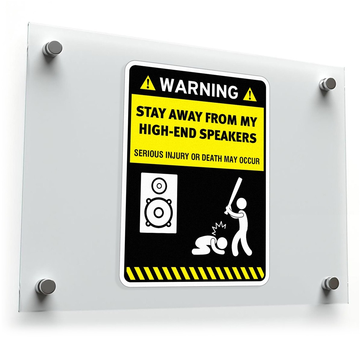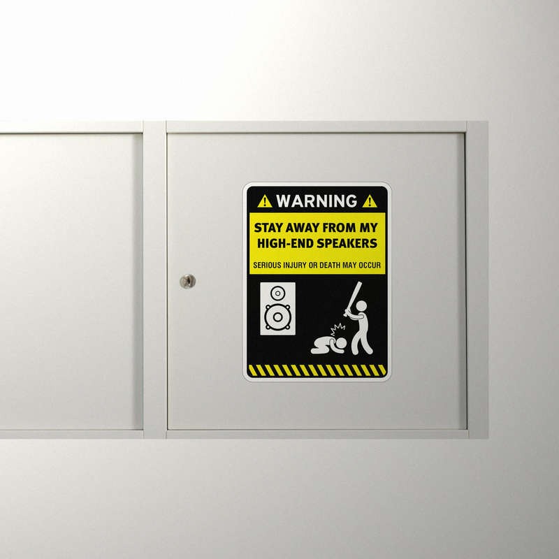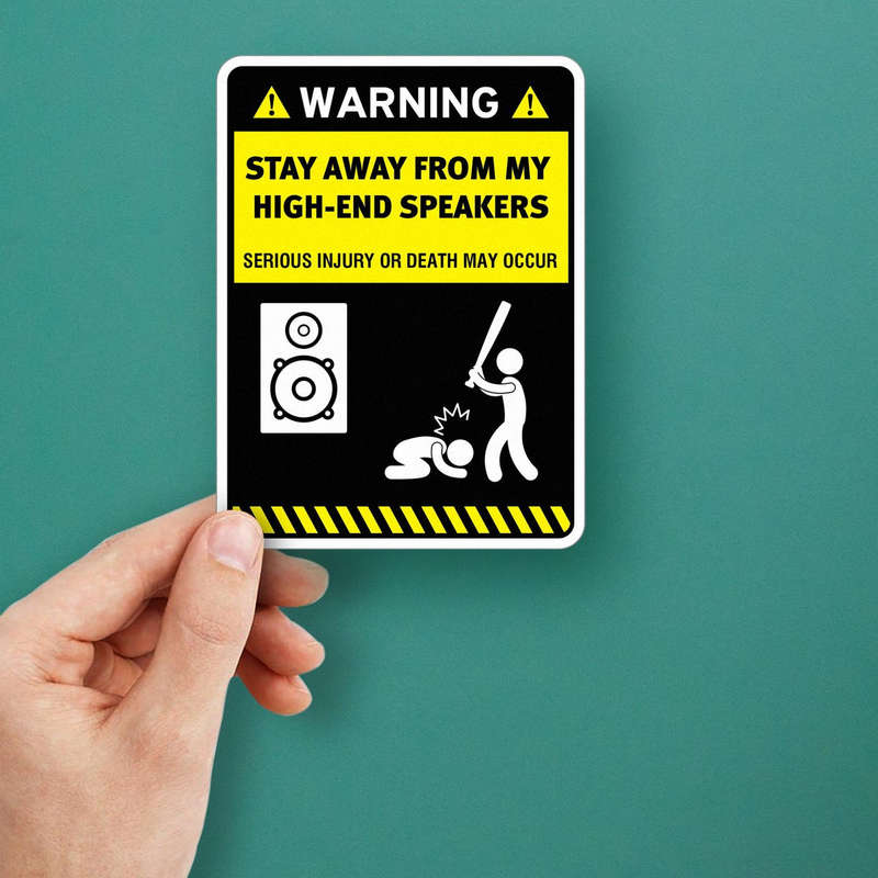 Show your love for high-quality sound with this humorous “Warning: Stay Away From My High-End Speakers” sticker. Featuring bold text and clear graphics, this vinyl decal sends a playful but serious message to anyone near your precious audio equipment. Perfect for placing on speakers, laptops, cars, or any smooth surface, this waterproof and durable sticker is designed to endure both indoor and outdoor use. The vibrant yellow and black design ensures it’s easily visible, making it an ideal addition for any audiophile. Easy to apply and remove, it offers a fun way to protect your space and gear.