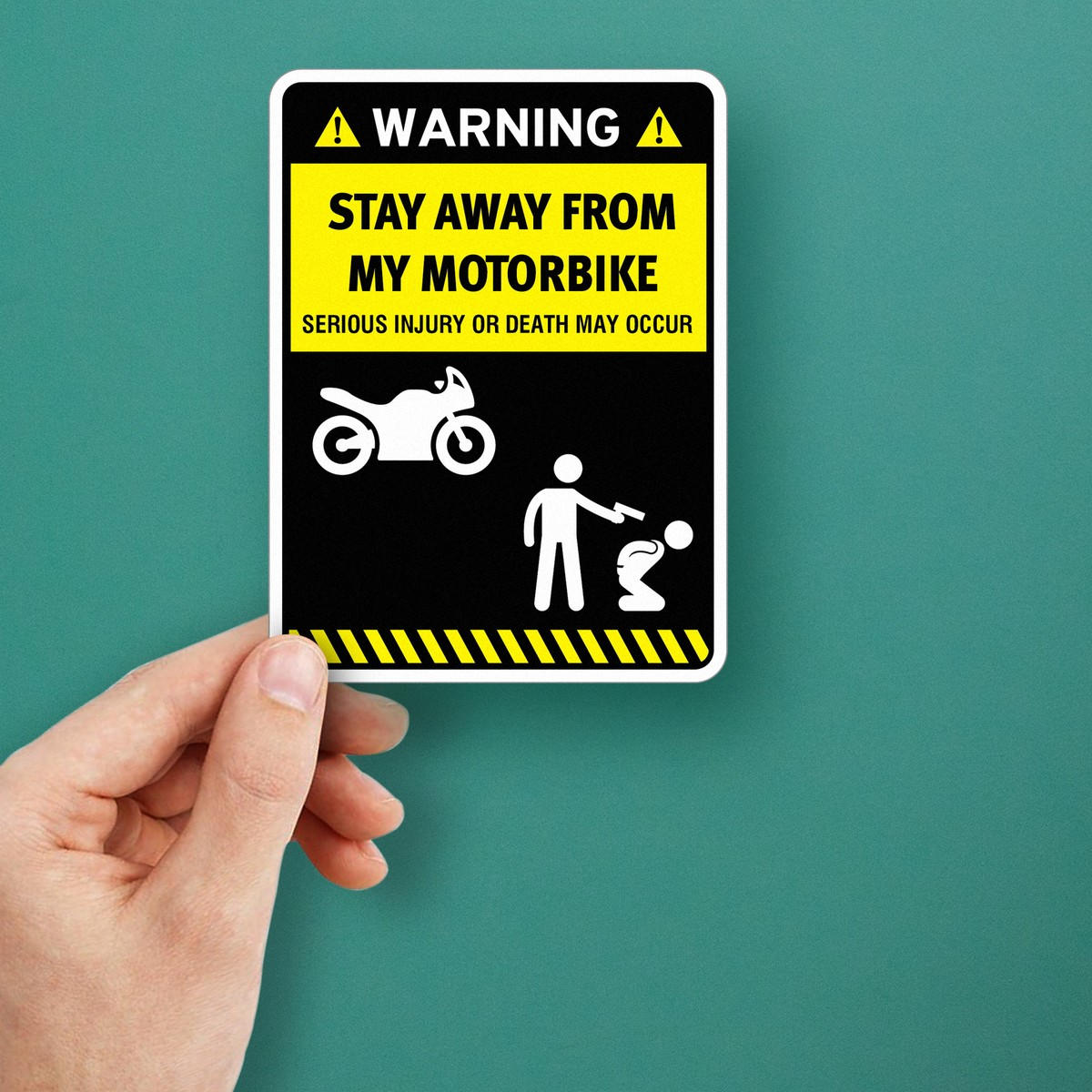 Keep your motorbike safe and secure with this bold and humorous warning sticker. Featuring a clear and playful message, this sticker is perfect for motorbike enthusiasts who want to add both style and protection to their bike, car, or garage. Made from durable and weatherproof vinyl, it’s designed to withstand outdoor elements while maintaining its vibrant look. With easy peel-and-stick application and residue-free removal, this sticker offers convenience and flexibility. Available in multiple sizes, it’s the perfect way to make a fun yet serious statement about your motorbike.
