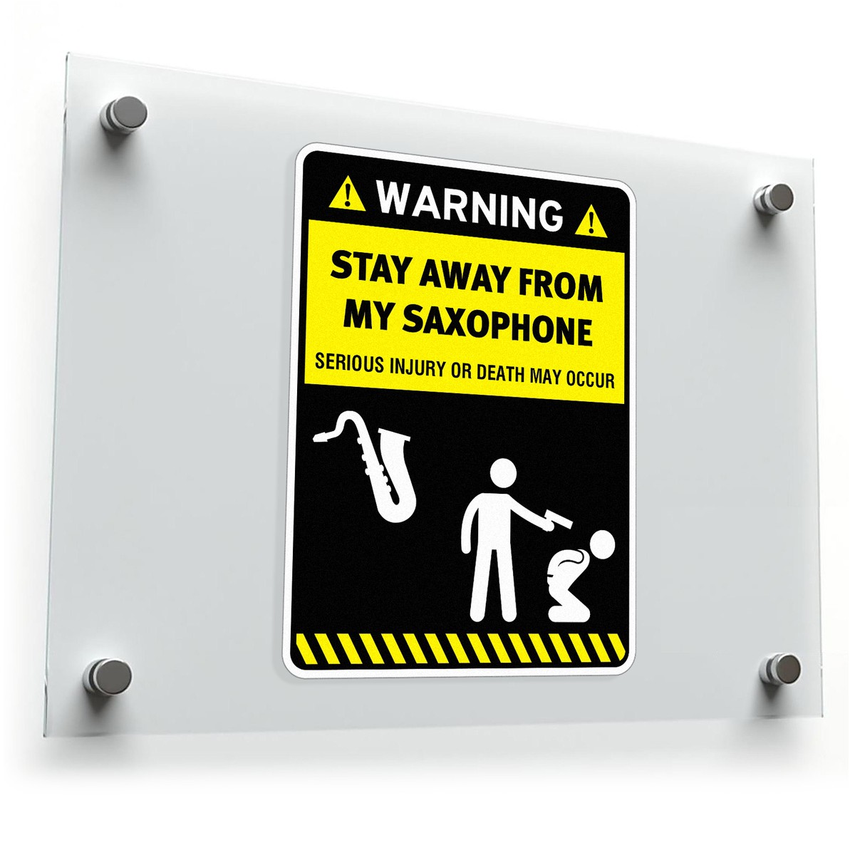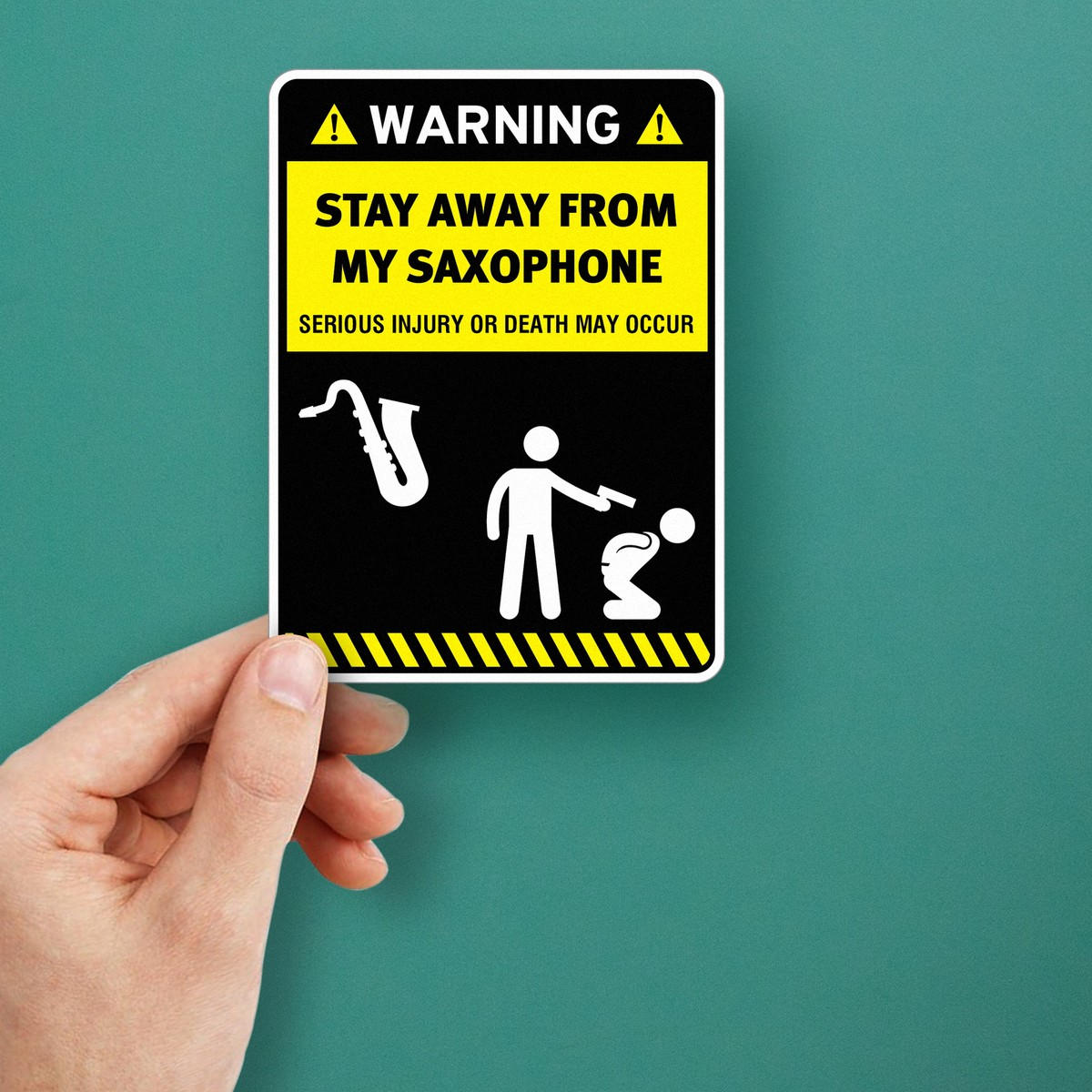 Add a touch of humor to your gear with this “Stay Away from My Saxophone” warning decal, perfect for musicians and saxophone lovers alike. Crafted from high-quality vinyl, this funny sticker is easy to apply and remove without leaving any residue, making it perfect for temporary or permanent decoration. Its bold design ensures that the message is clear while adding a playful touch to cars, laptops, or instrument cases. Built to last, this durable, weatherproof decal ensures long-lasting visibility in any condition. Available in multiple size options, it’s ideal for any surface that needs a bit of saxophone protection.