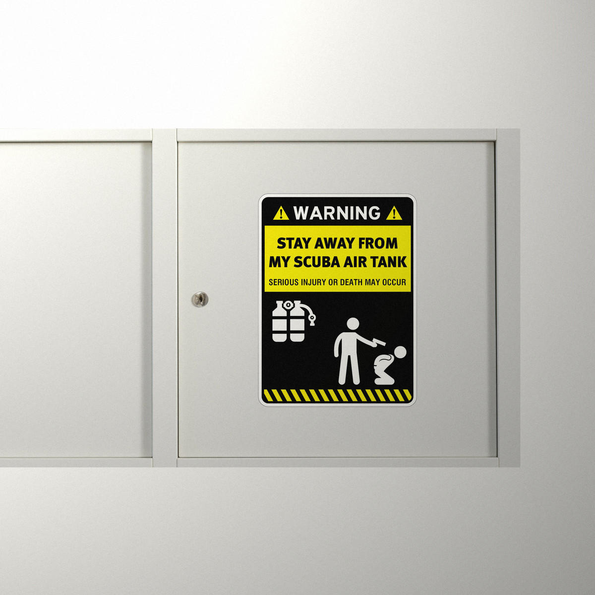 Keep your scuba gear protected with this “Stay Away From My Scuba Air Tank” warning sticker, designed to clearly communicate the risks involved with unauthorized handling. Made from high-quality, weatherproof vinyl, this durable sticker stands up to the elements, ensuring lasting visibility both underwater and on land. Its bold yellow and black design ensures that the warning is seen from a distance, providing an extra layer of safety for divers. Available in multiple sizes, this sticker is perfect for individual tanks or larger areas where scuba equipment is stored. Ensure your safety and that of others with this easy-to-apply, high-visibility decal.