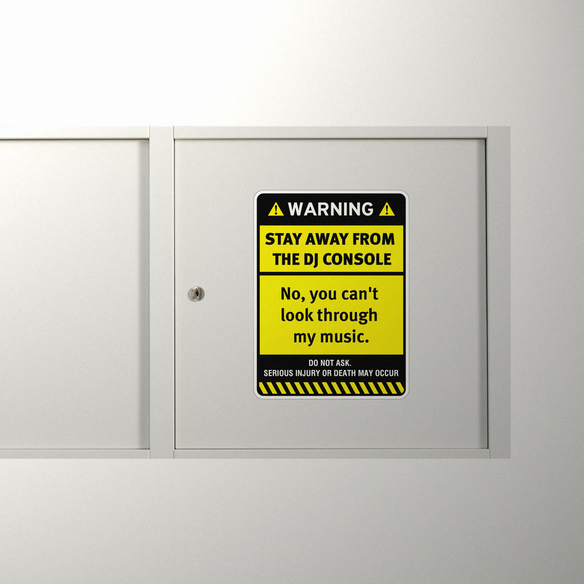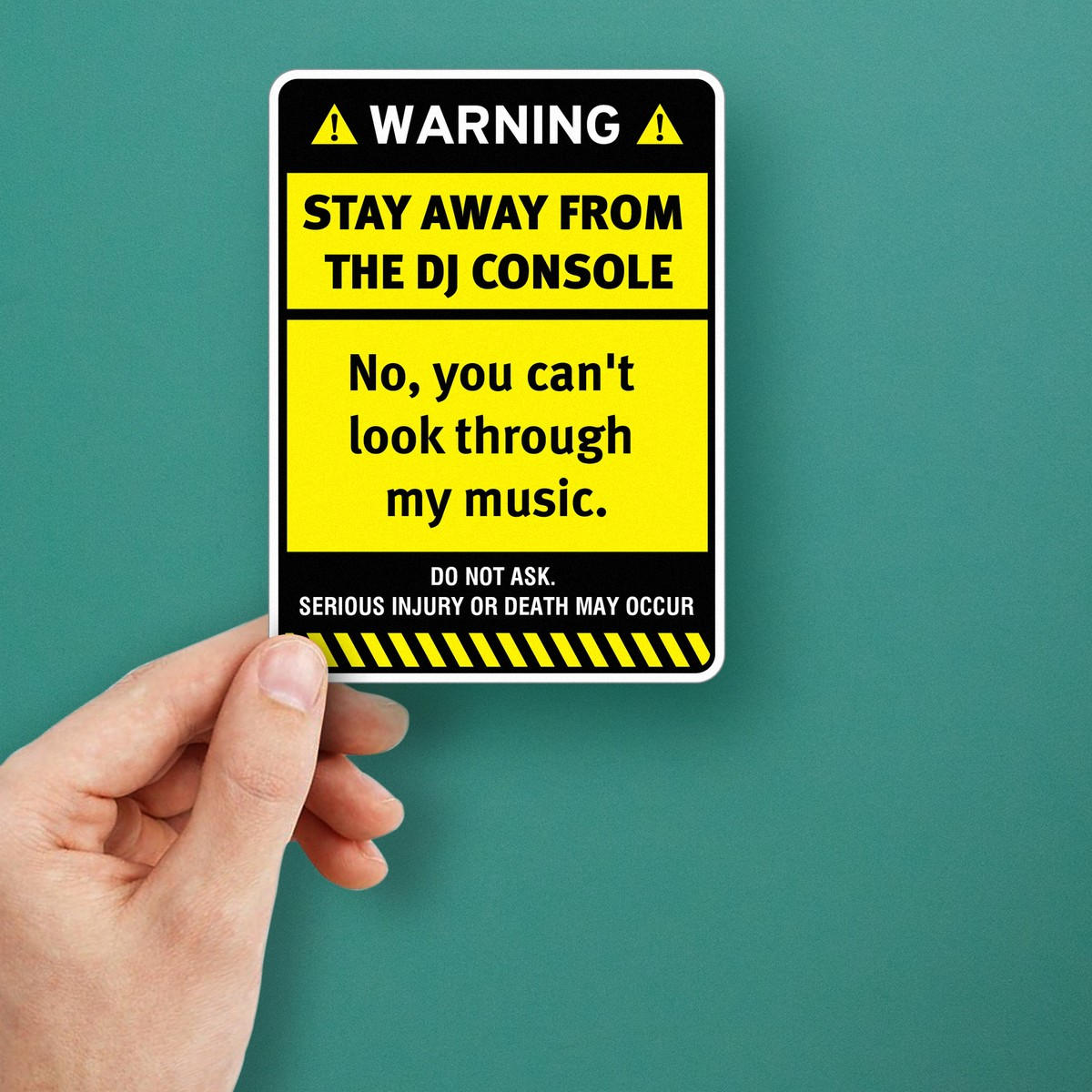 🎶 Ideal for DJ Booths: Whether in a professional setting or home studio, this sticker adds a humorous touch to your DJ booth while conveying a serious message. 🎶
