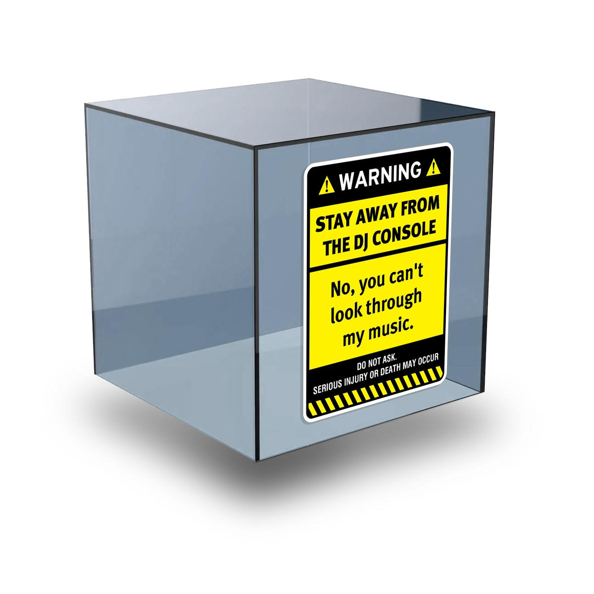Add a touch of humor and practicality to your DJ setup with this “Stay Away From the DJ Console” warning sticker, specifically designed to keep people from browsing your music. The bright yellow and black design is not only eye-catching but also effective in delivering a clear message. Made from durable vinyl, this sticker is built to withstand indoor and outdoor conditions, making it a perfect addition to any DJ booth or music studio. Easy to apply and remove, it leaves no residue behind, ensuring your equipment stays pristine. Available in multiple size options, this sticker is ideal for DJs who want to keep their workspace distraction-free.