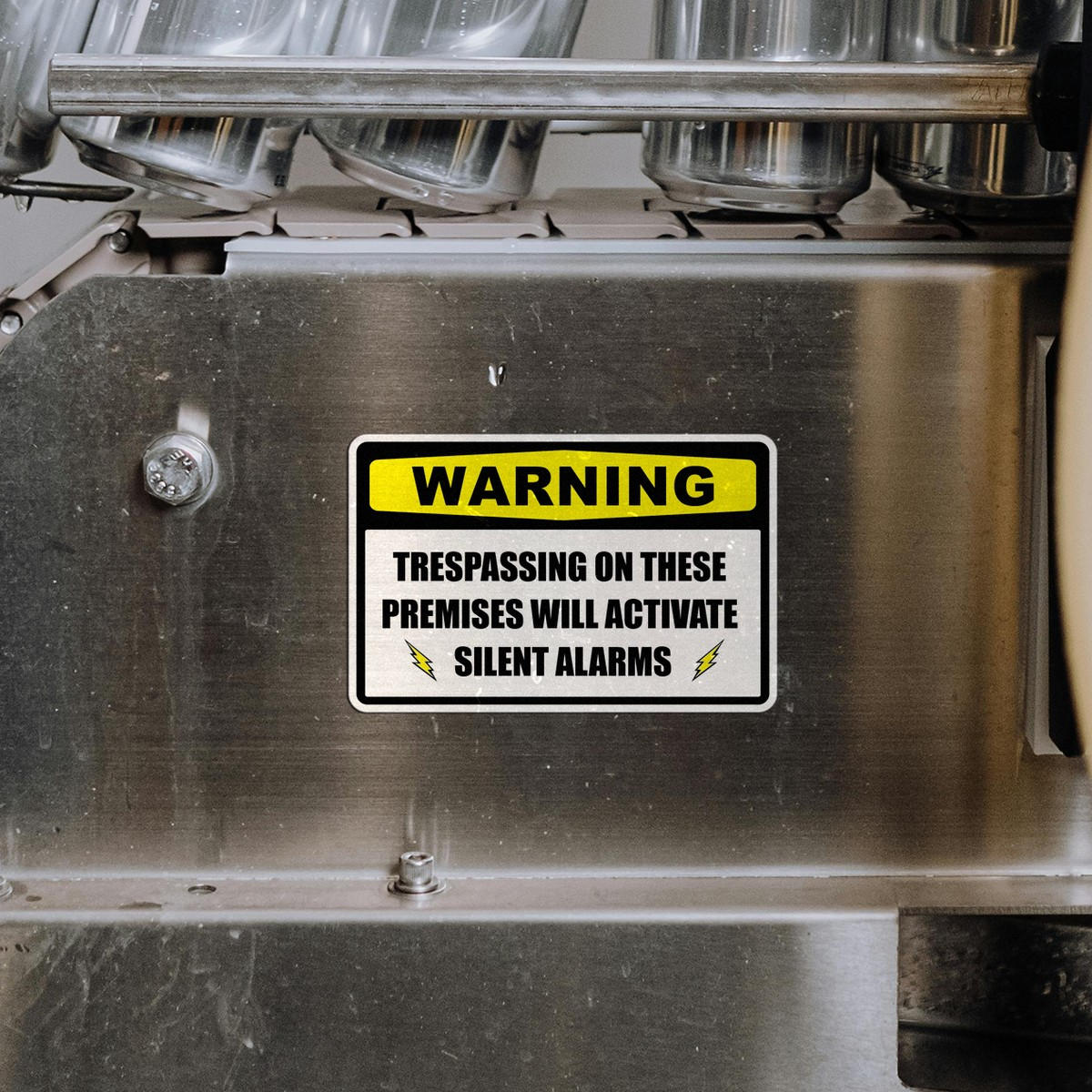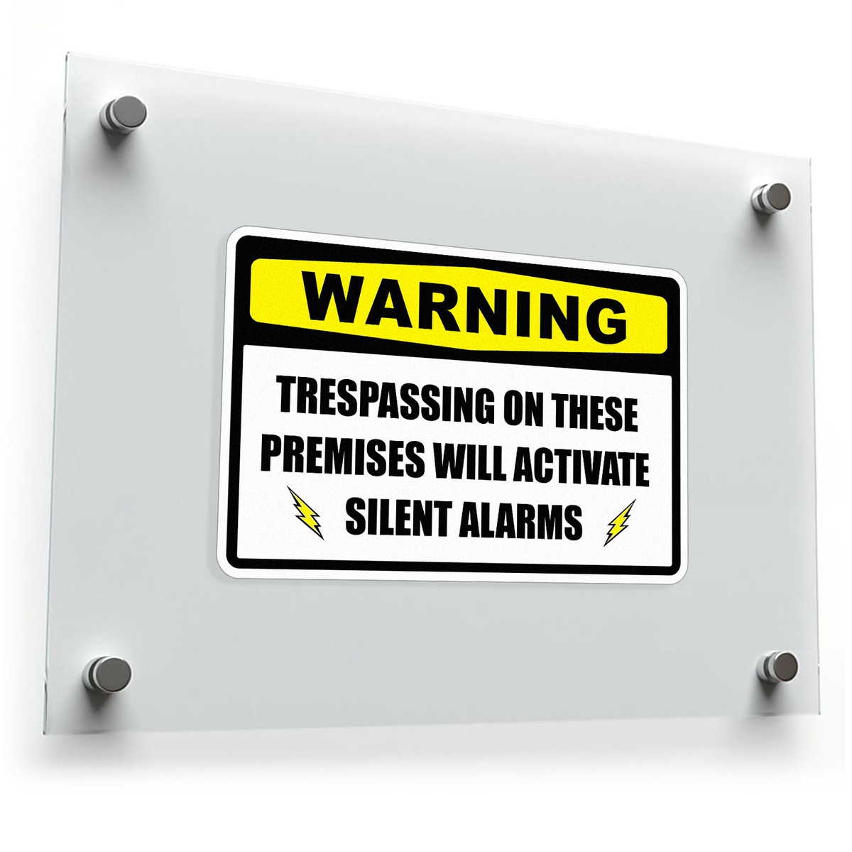 Warning: Trespassing Will Activate Silent Alarms Sign 🚨 Silent Alarm Warning: This “Warning: Trespassing Will Activate Silent Alarms” sticker provides a clear, bold message to deter potential intruders and enhance your property’s security. 🚨