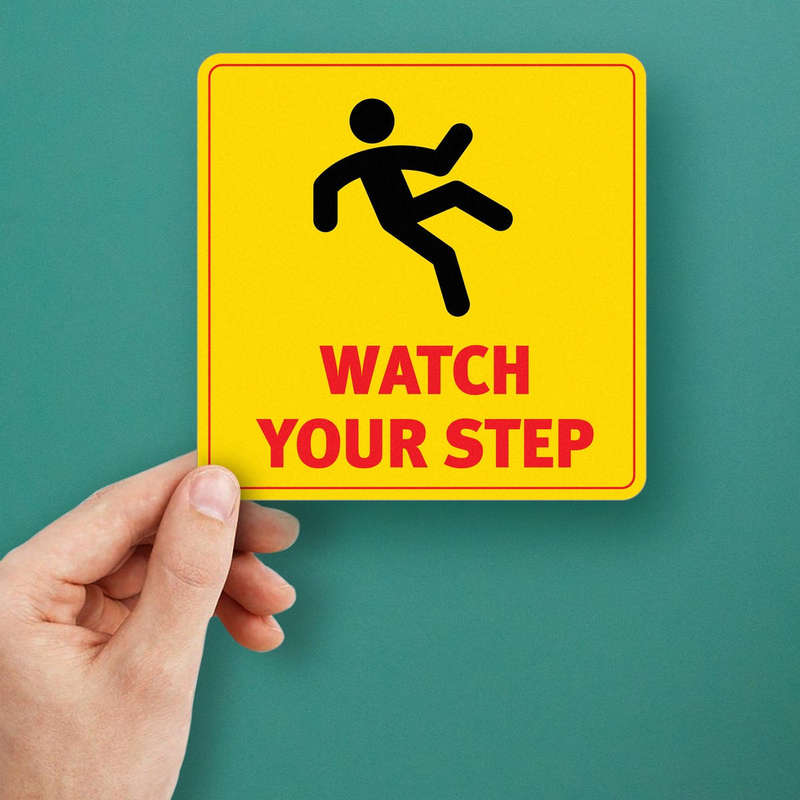 Promote safety and accident prevention with this “Watch Your Step” sticker, a must-have for workplaces, schools, and public areas. Featuring bold red text and a slip hazard graphic on a bright yellow background, this decal provides maximum visibility to warn of potential risks. Made from durable vinyl, it withstands wear, moisture, and fading, ensuring long-term use in indoor and outdoor environments. Easy to apply on floors, walls, or doors, this sticker stays securely in place, serving as a constant reminder to exercise caution. Available in multiple sizes, it’s an essential tool for reducing slips and falls in busy areas.