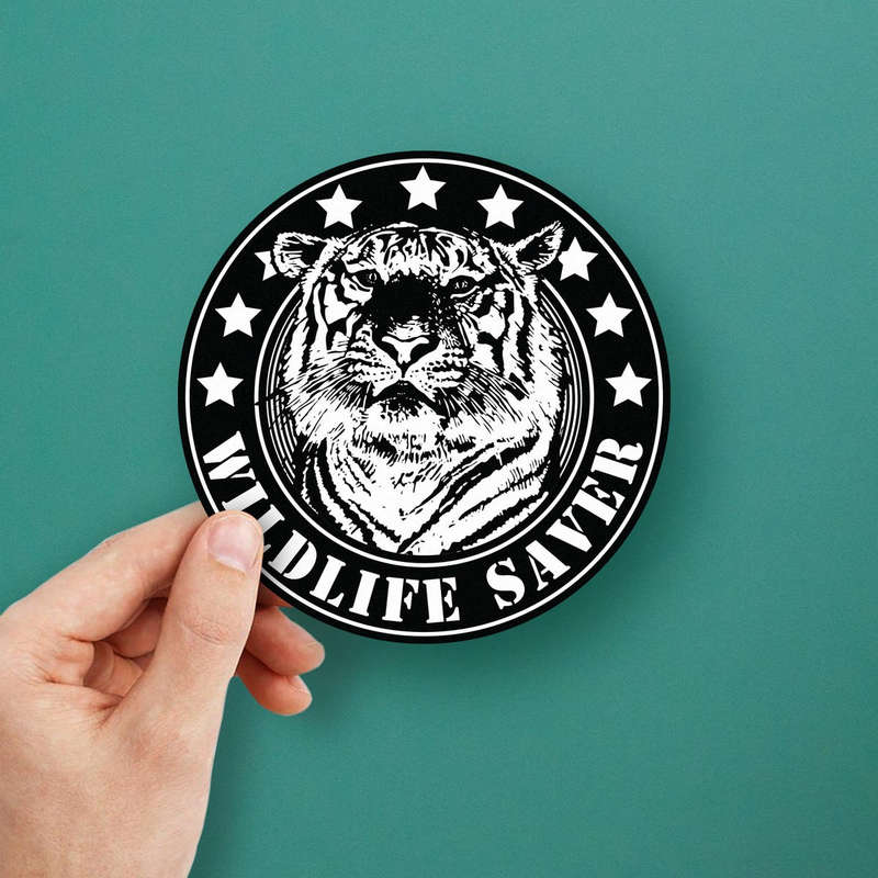 Celebrate your passion for wildlife conservation with this striking Wildlife Saver tiger vinyl sticker. Featuring a bold black and white design with a tiger illustration surrounded by stars, this decal is perfect for spreading awareness and adding a unique touch to cars, laptops, or home decor. Made from durable weatherproof vinyl, it resists water, fading, and wear, ensuring long-lasting use both indoors and outdoors. With easy application and residue-free removal, this sticker combines purpose and style effortlessly. Available in multiple size options, it’s a meaningful addition for nature enthusiasts or supporters of wildlife preservation.