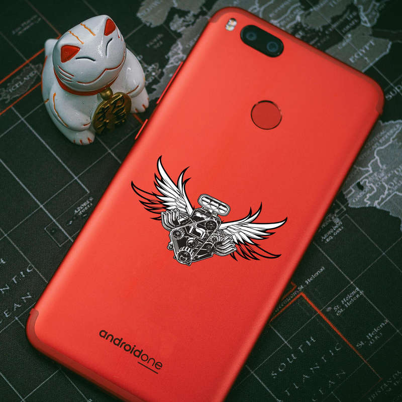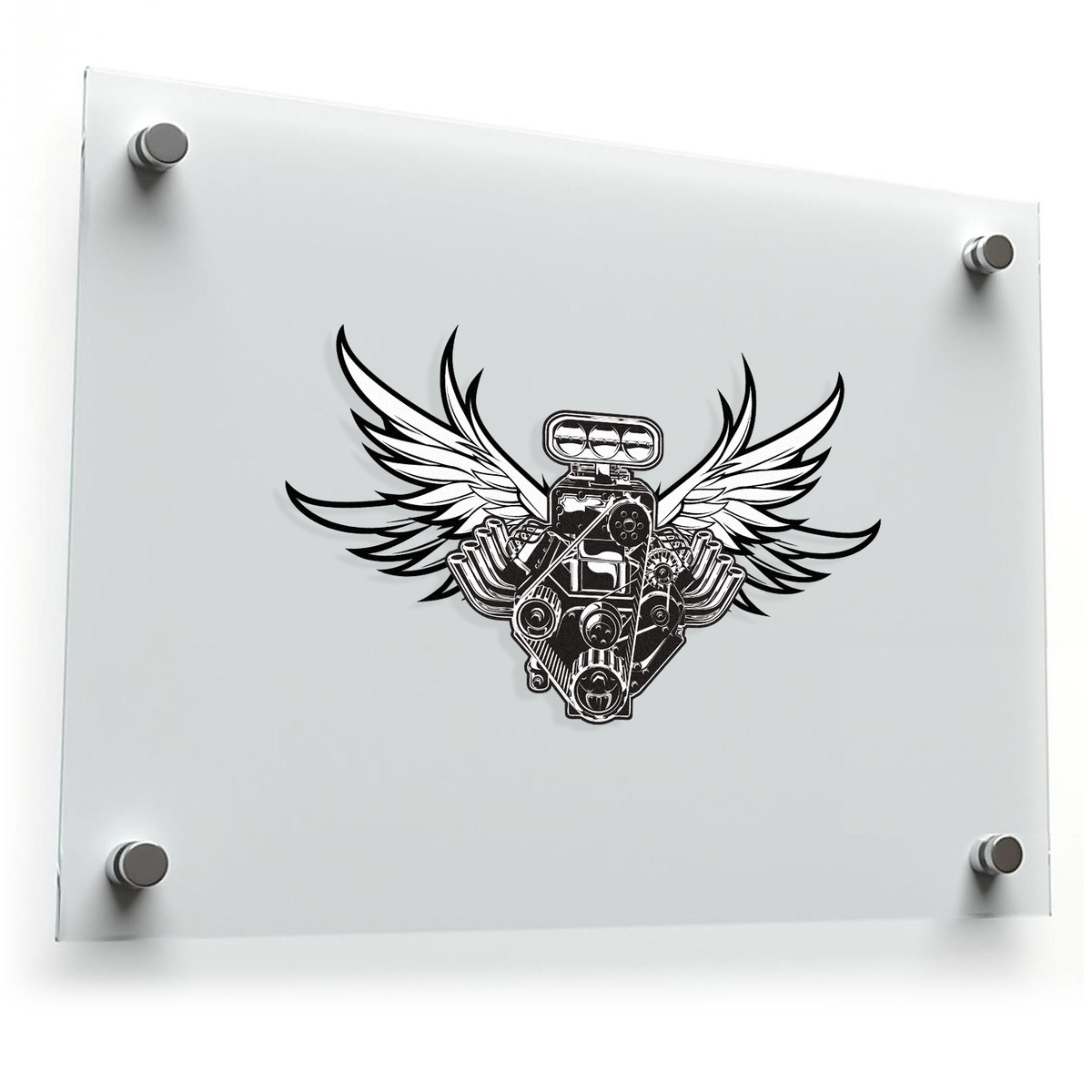Winged Engine Design Sticker 🚗 Bold Winged Engine Design: This striking sticker features a powerful engine with wings, perfect for car enthusiasts, bikers, and anyone passionate about speed and mechanics. 🚗