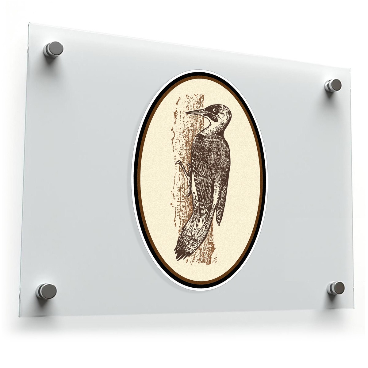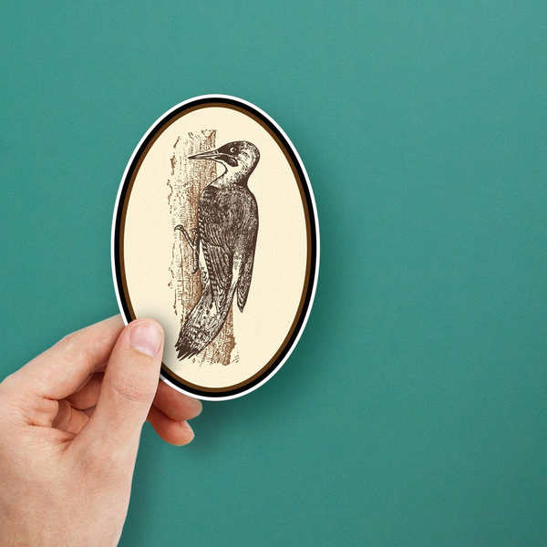 Woodpecker Silhouette Sticker – Vintage Oval