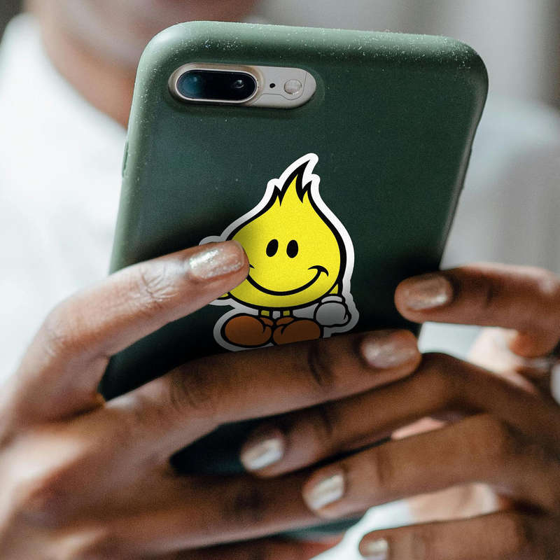🎨 Vibrant and Fun Design: Featuring the classic yellow flame with a cheerful cartoon face, this decal is perfect for personalizing your gear with bold, recognizable style. 🎨