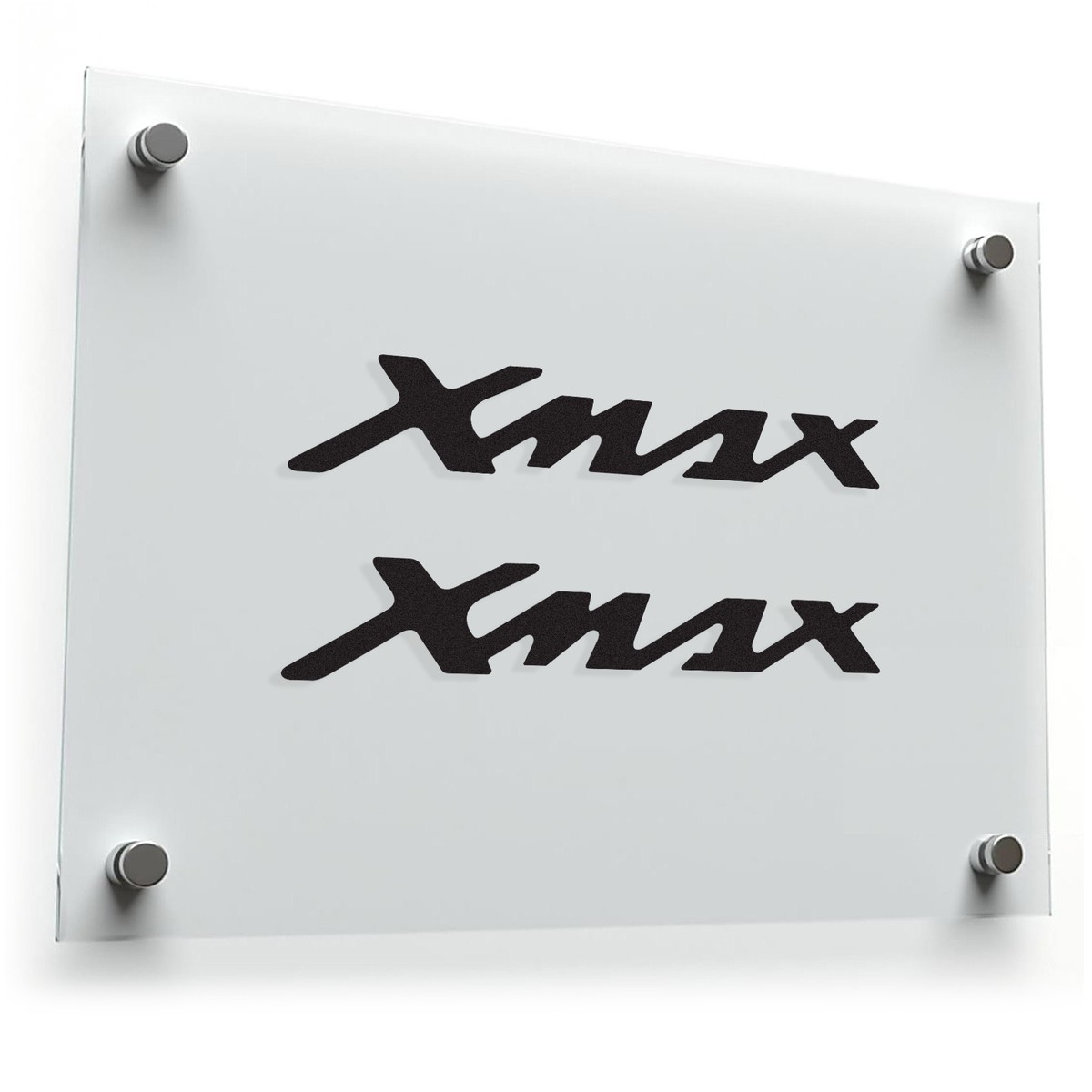 Give your Yamaha XMAX a custom look with this set of two high-quality logo stickers. These “XMAX” decals are designed for scooter fairings and instantly enhance the modern aesthetic of your ride. Made from durable, weather-resistant vinyl, these decals are built to last and withstand daily use. The sleek black color scheme adds a touch of sophistication, making your scooter stand out from the crowd. Easy to apply and remove, these decals offer a simple yet effective way to personalize your XMAX and showcase your style. Available in multiple size options. The image shows two identical Yamaha XMAX sticker sets. Each set contains two black decals with the word “XMAX” in a stylized, bold font. The decals are designed to be placed on either side of the scooter. The background is plain white.