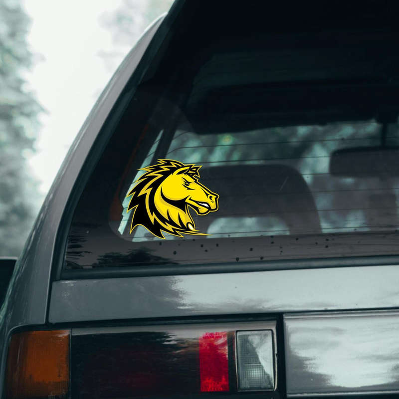 Show off your love for horses with this bold yellow and black horse head vinyl sticker. Featuring a dynamic tribal-inspired stallion design, this decal brings an energetic and artistic touch to laptops, car windows, water bottles, and more. Made from durable waterproof vinyl, it’s built to resist scratches, fading, and peeling, ensuring long-lasting beauty indoors and outdoors. Easy to apply and remove without residue, this horse silhouette sticker makes a great gift for equestrians, animal lovers, or anyone seeking a standout piece of decor. Available in multiple size options to fit your style.